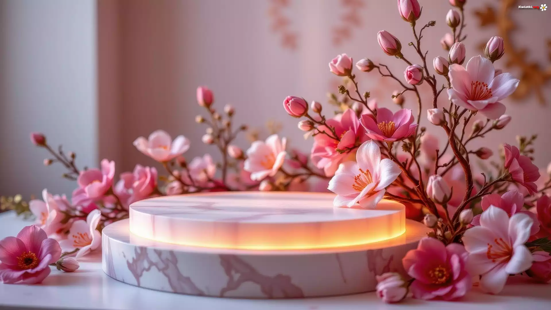 Podświetlone, Podium, Różowe, Kwiaty, Pąki - Zdjęcia