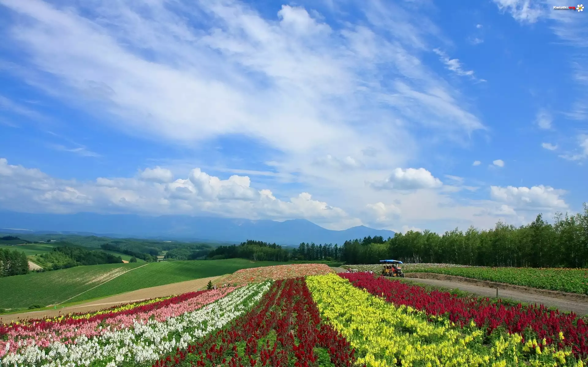 Pola, Kwiaty, Droga, Maszyny, Rolnicze - Zdjęcia
