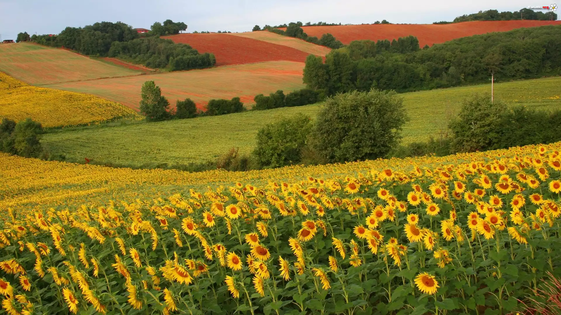 Kwiat Słoneczniki, Pola, Drzewa