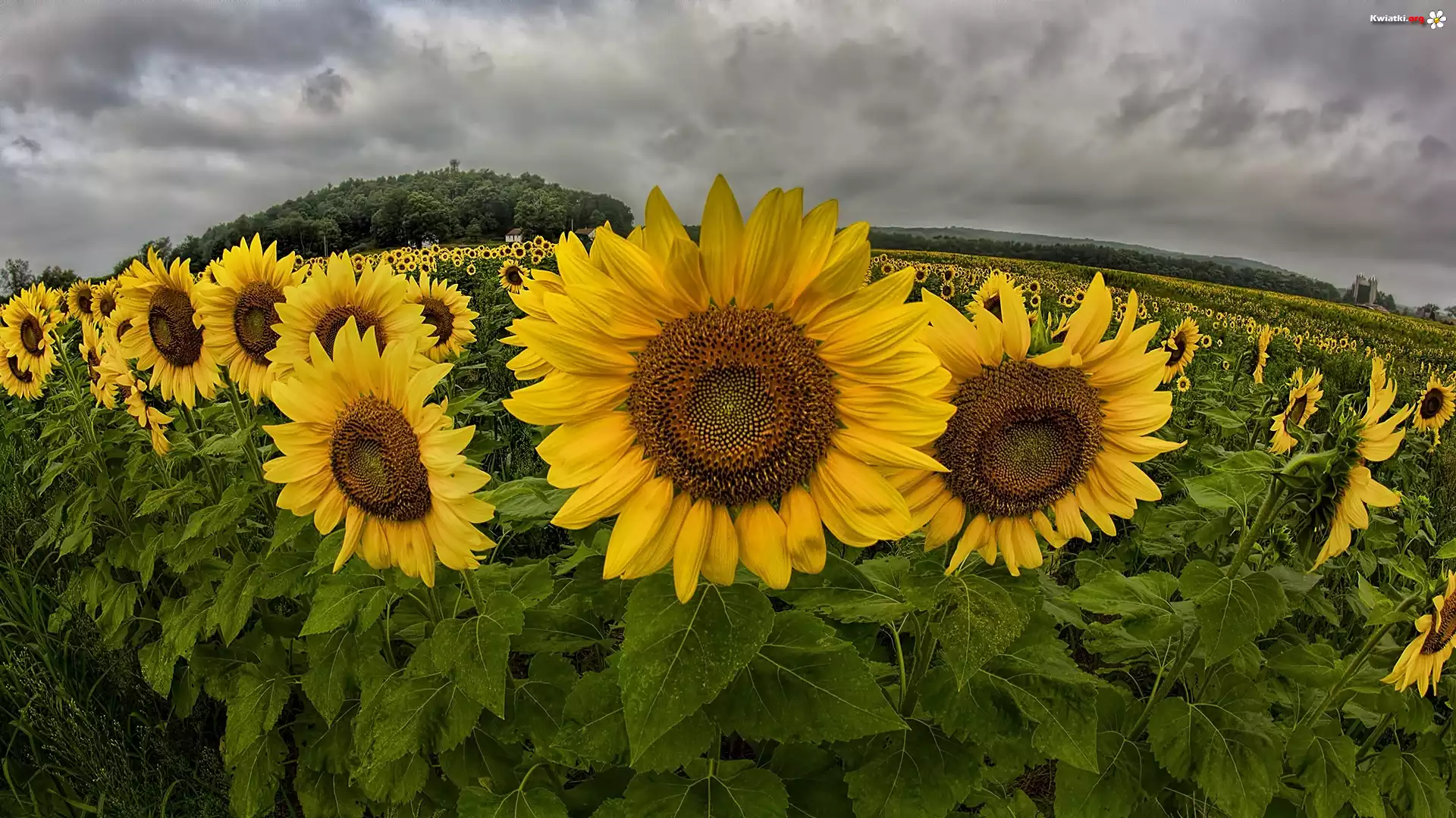 Pole, Słoneczników, Chmury, Panorama - Zdjęcia