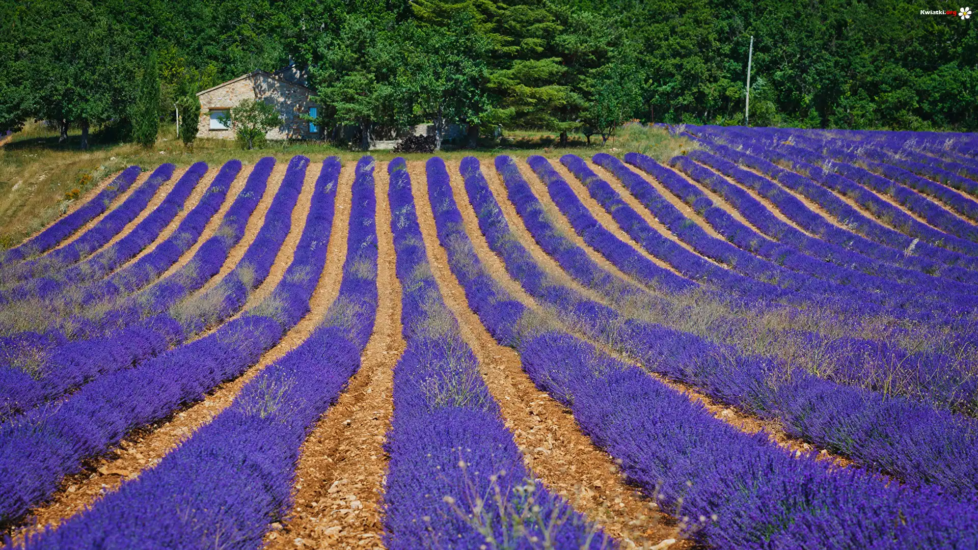 Kwiat Pole, Lawenda, Dom, Drzewa, Lato
