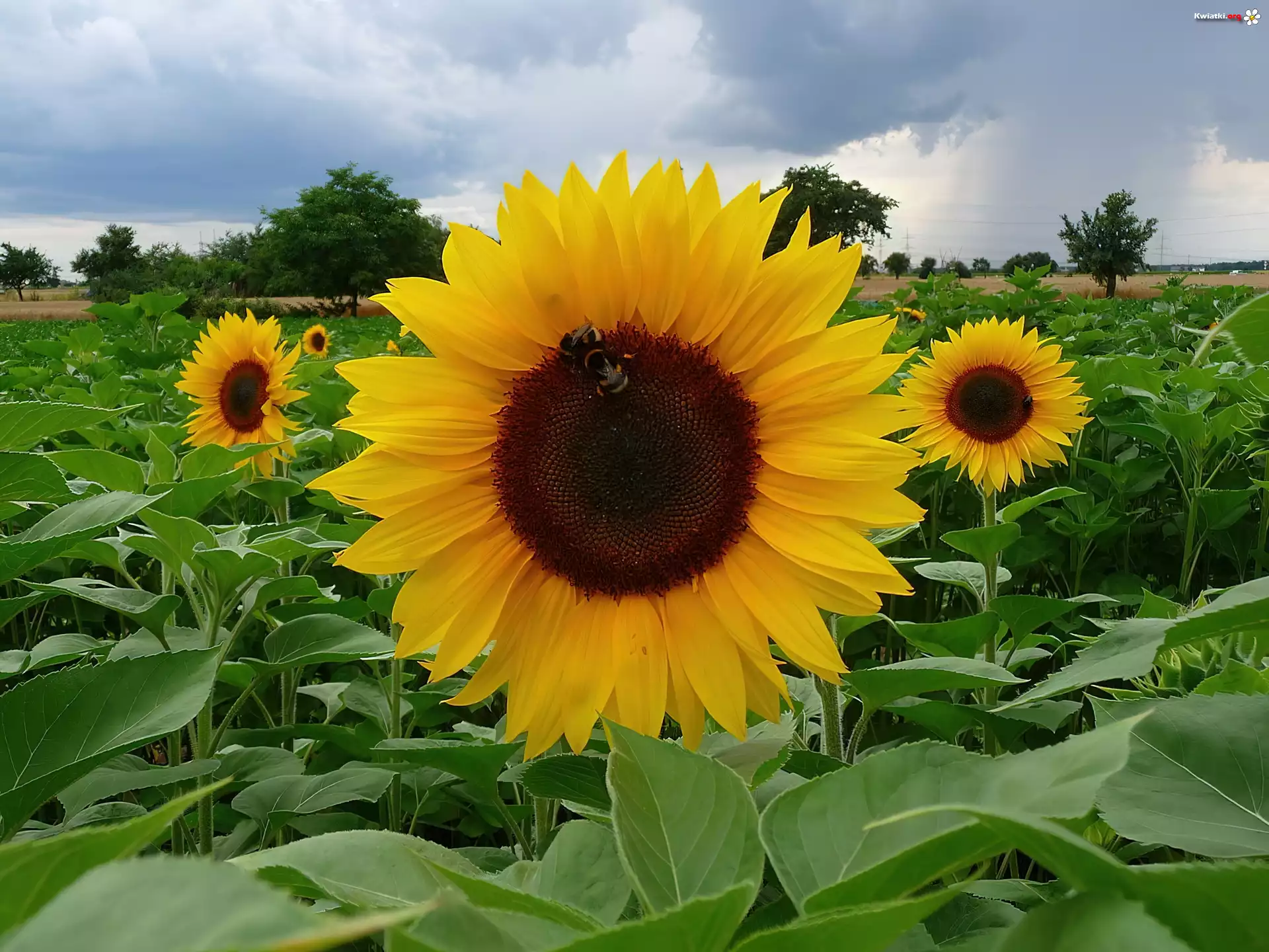 Pole, Słoneczników, Drzewa, Chmury - Zdjęcia