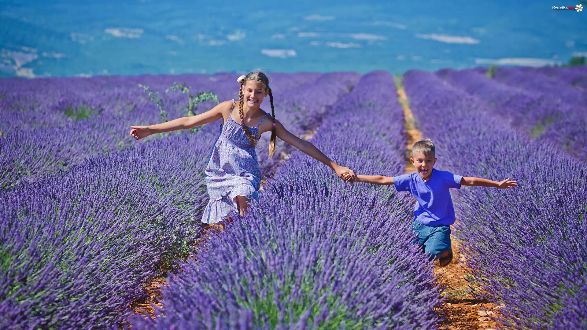Kwiat Pole, Lawenda, Dzieci, Dziewczynka, Chłopiec
