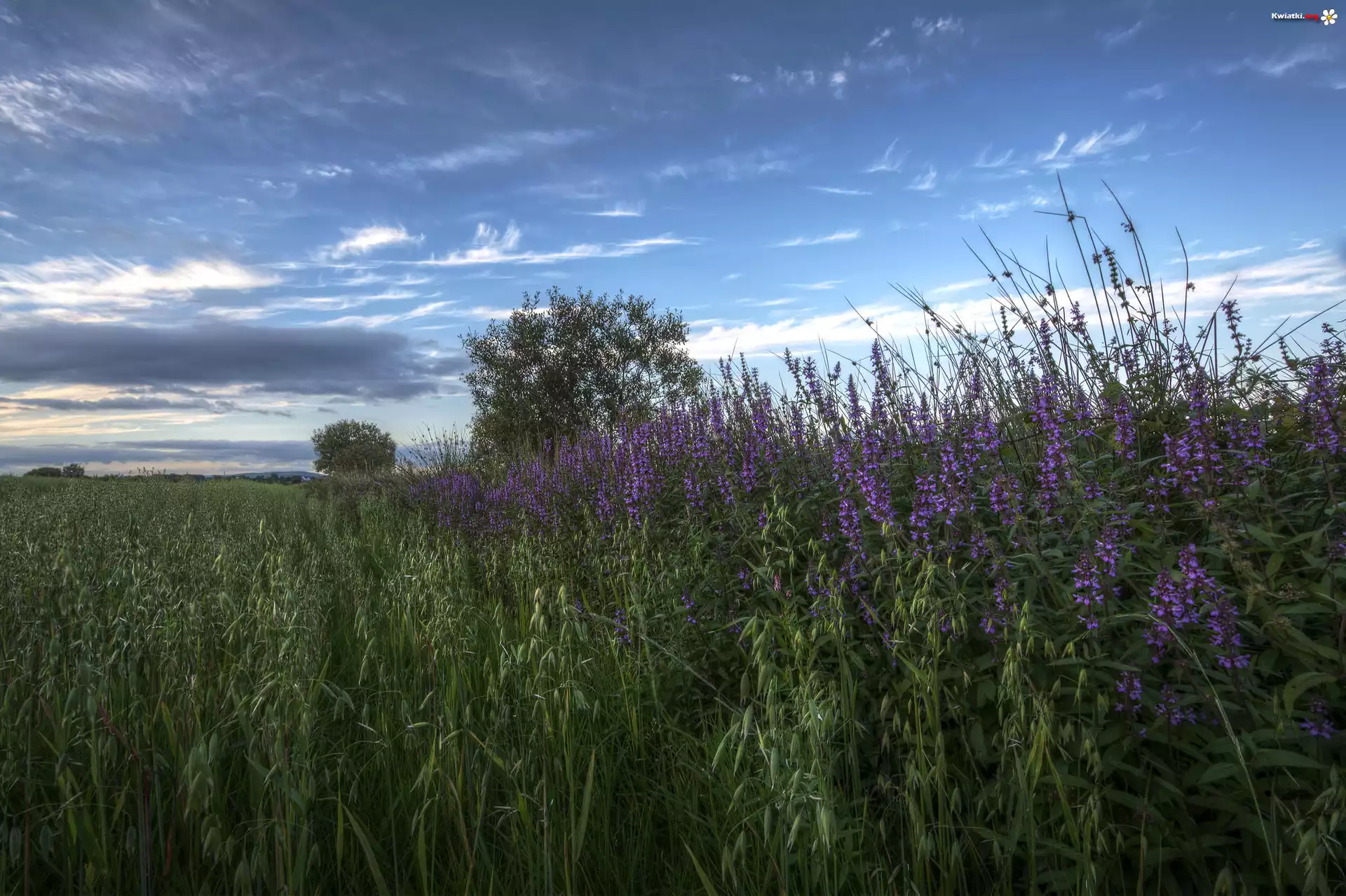 Pole, Owies, Polne, Kwiaty, Drzewa - Zdjęcia