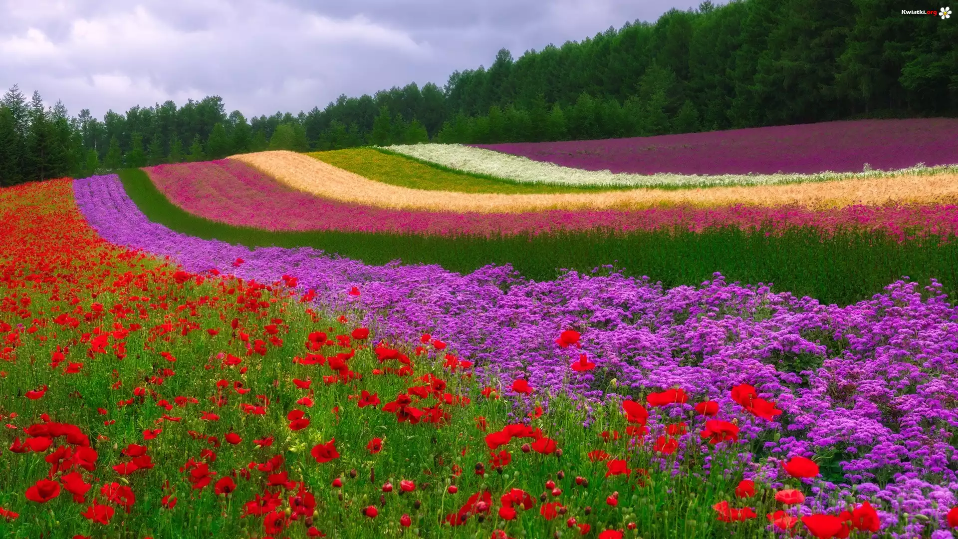 Pole, Kolorowe, Kwiaty, Las, Drzewa - Zdjęcia