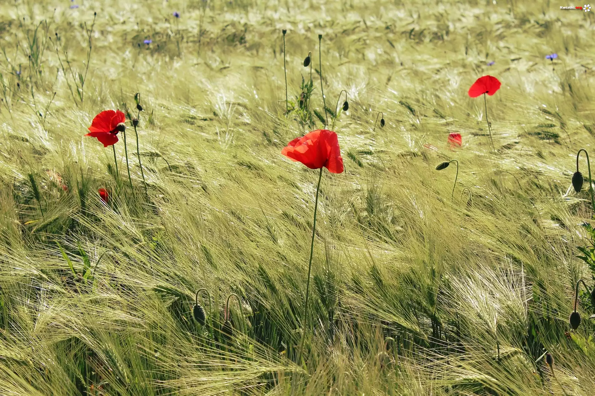 Pole, Zboża, Czerwone, Maki, Lato - Zdjęcia