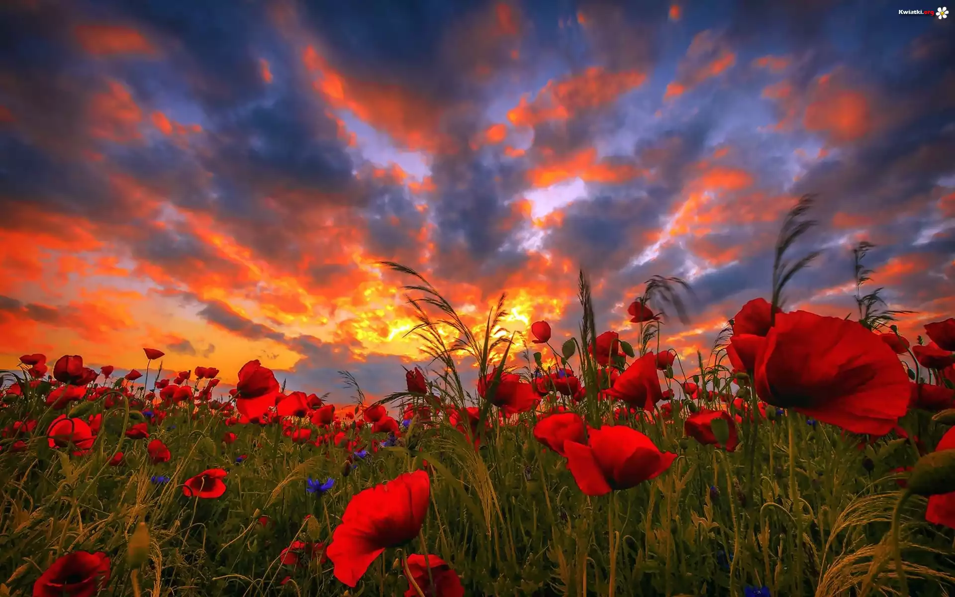 Kwiat Pole, Maki, Trawa, Chmury