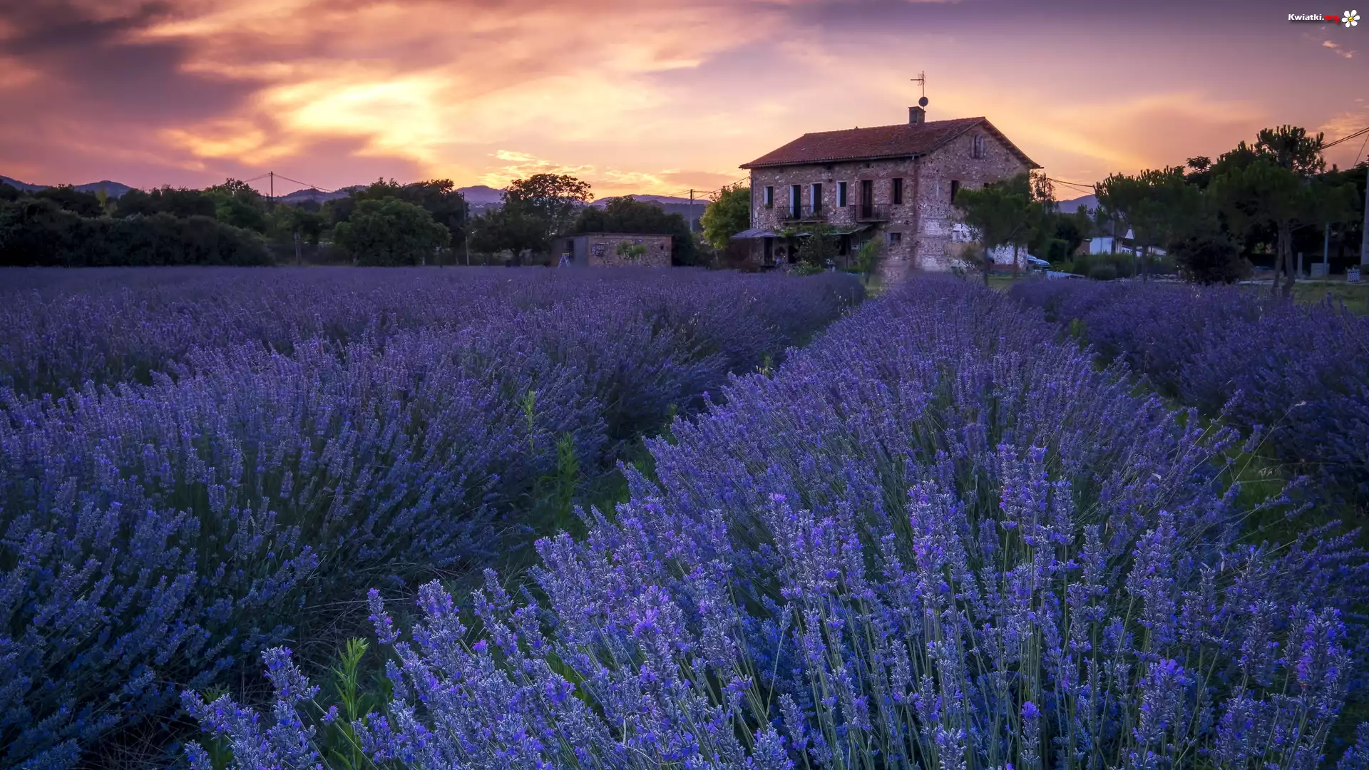 Kwiat Pole, Lawenda, Dom, Wschód słońca