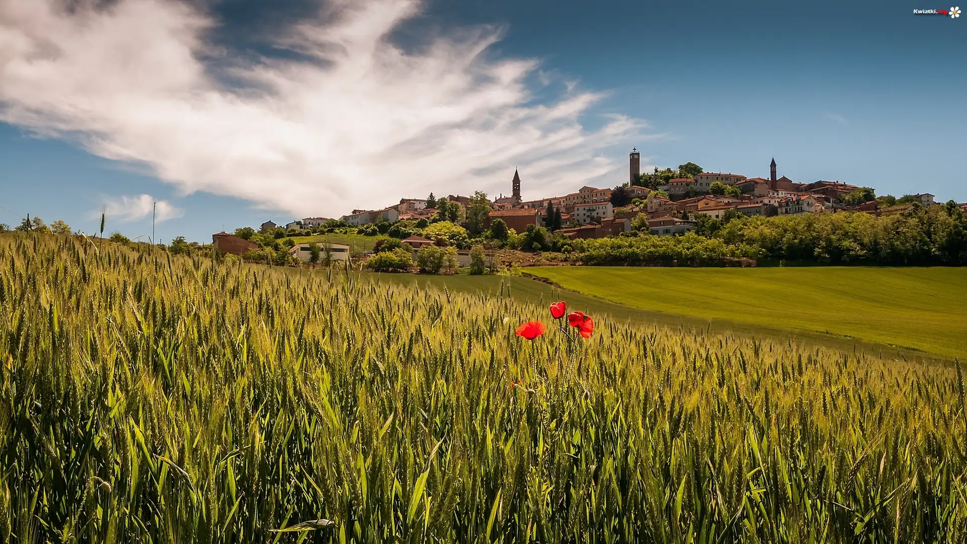 Kwiat Pole, Zboże, Mak, Zabudowania, Włochy