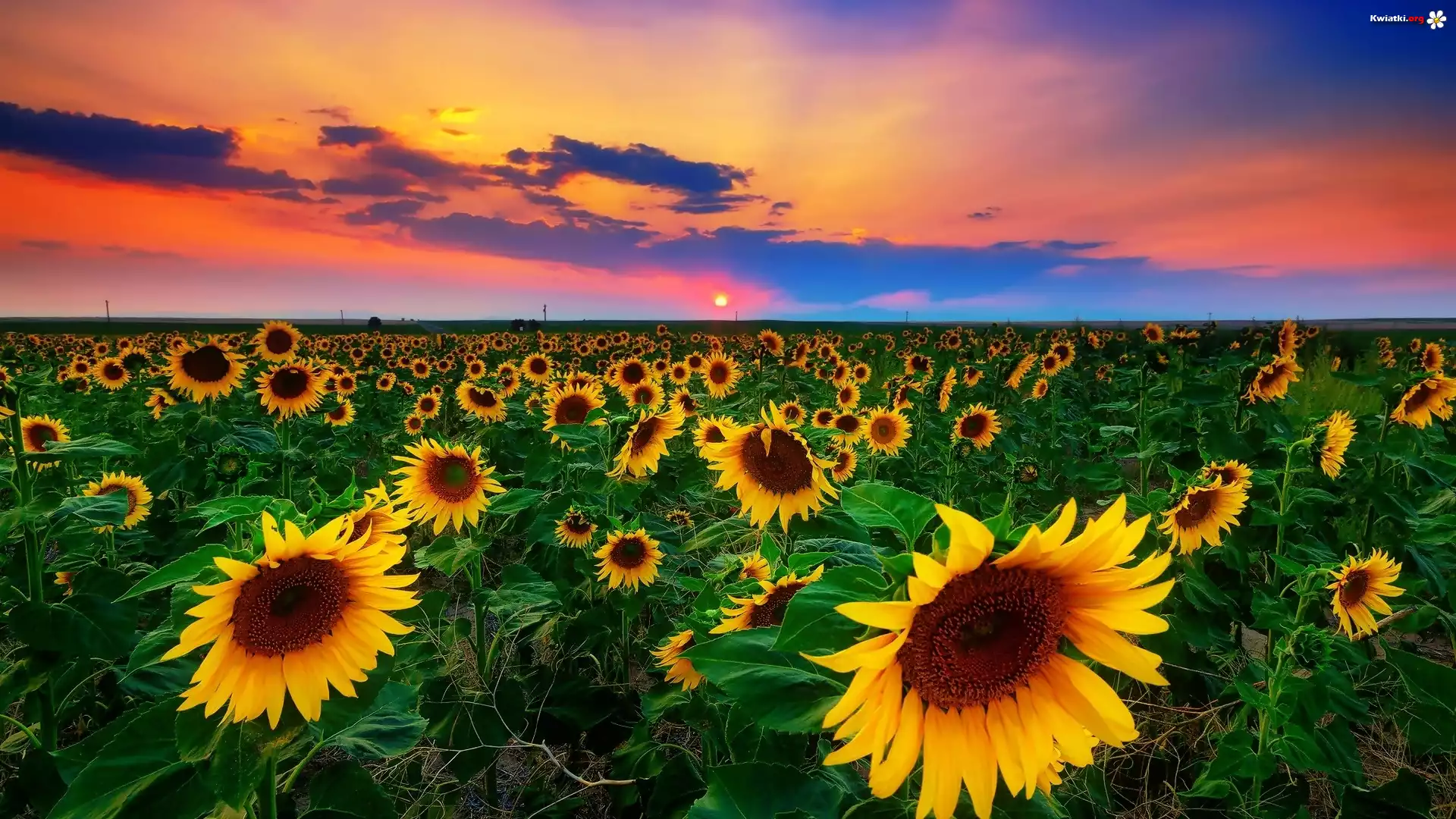 Pole, Słoneczniki, Piękny, Zachód, Słońca - Zdjęcia
