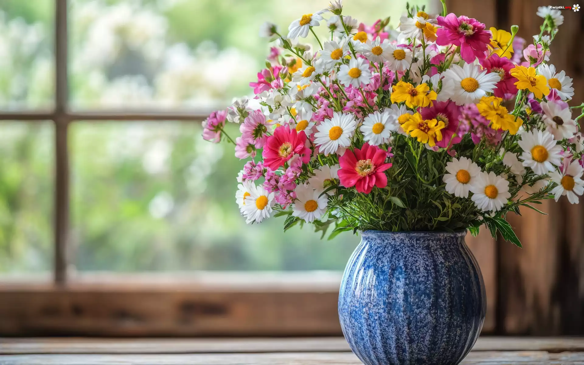 Kwiaty, Polne, Bukiet, Wazon, Okno - Zdjęcia