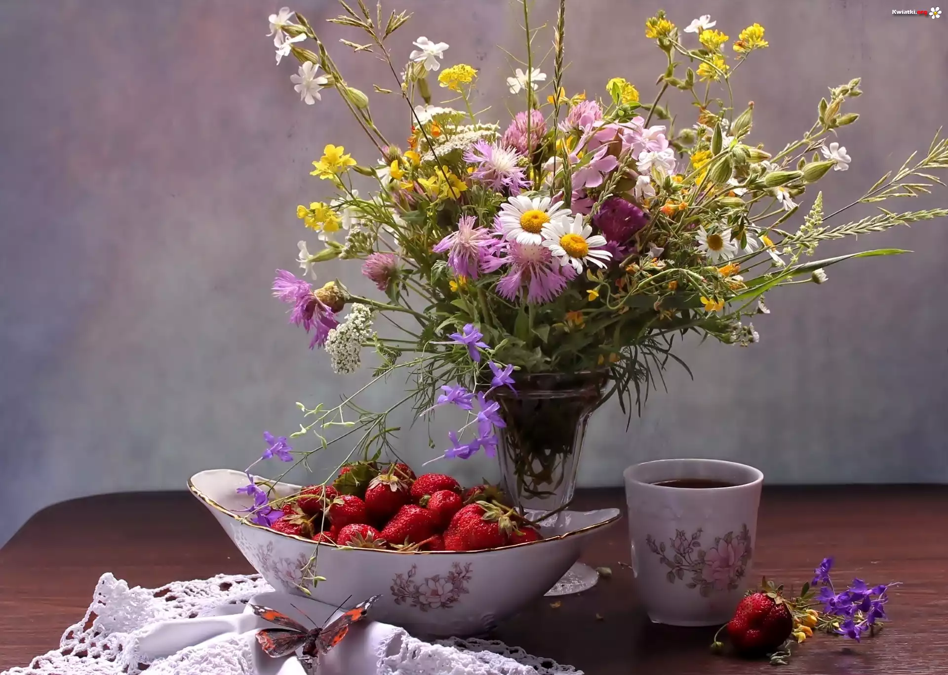 Polne, Kwiaty, Flakon, Truskawki - Zdjęcia