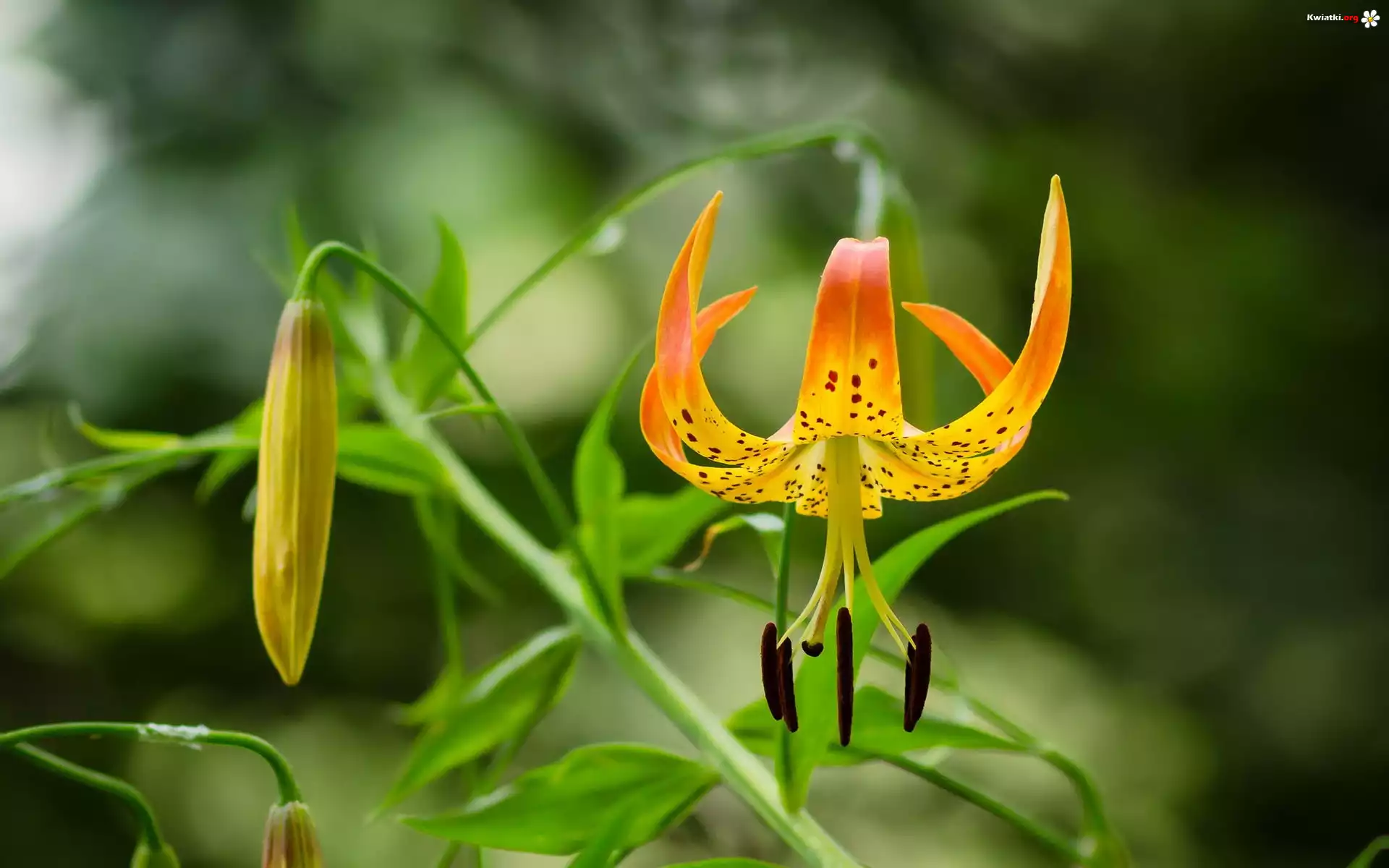 Kwiat Pomarańczowa, Lilia, Tygrysia, Rozmyte, Tło