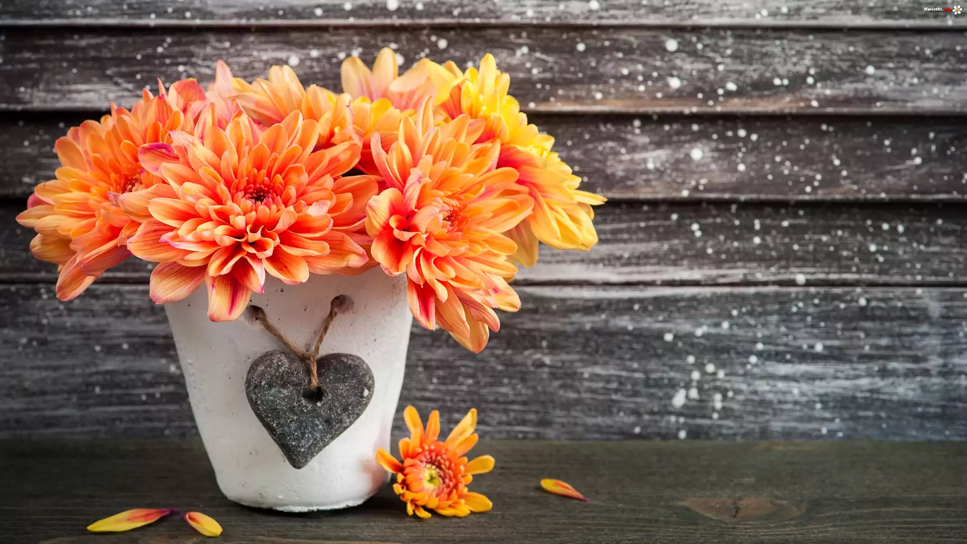 Kwiat Pomarańczowe, Chryzantemy, Doniczka, Serduszko