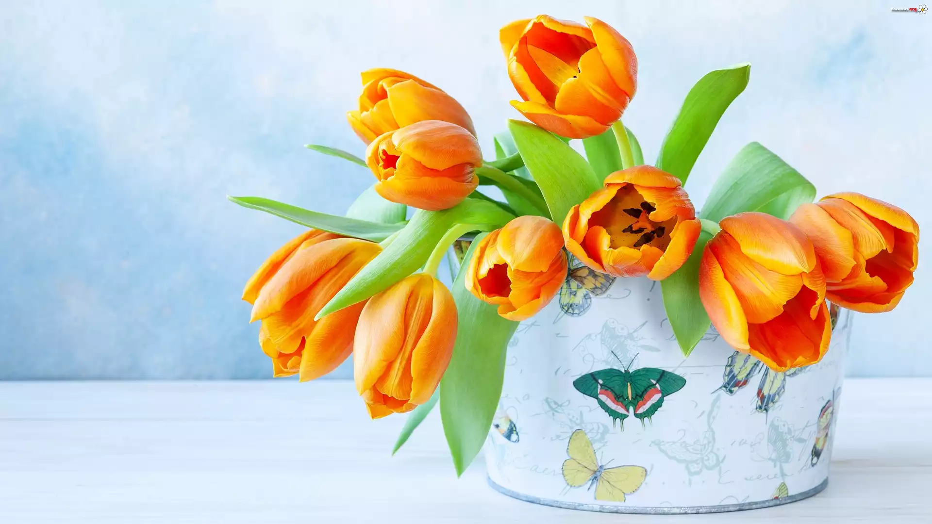 Kwiat Pomarańczowe, Tulipany, Pudełko, Jasne, Tło