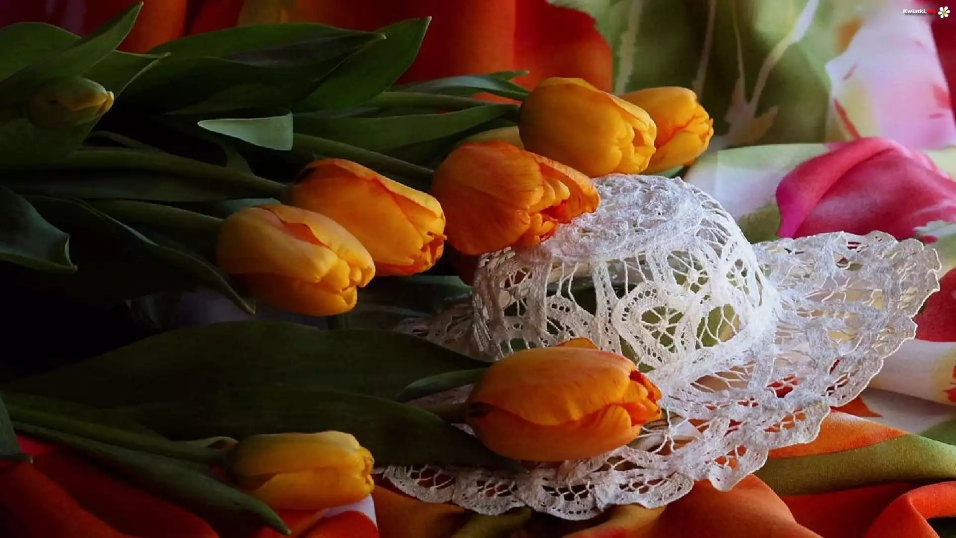 Kwiat Pomarańczowe, Tulipany, Koronkowy, Kapelusz