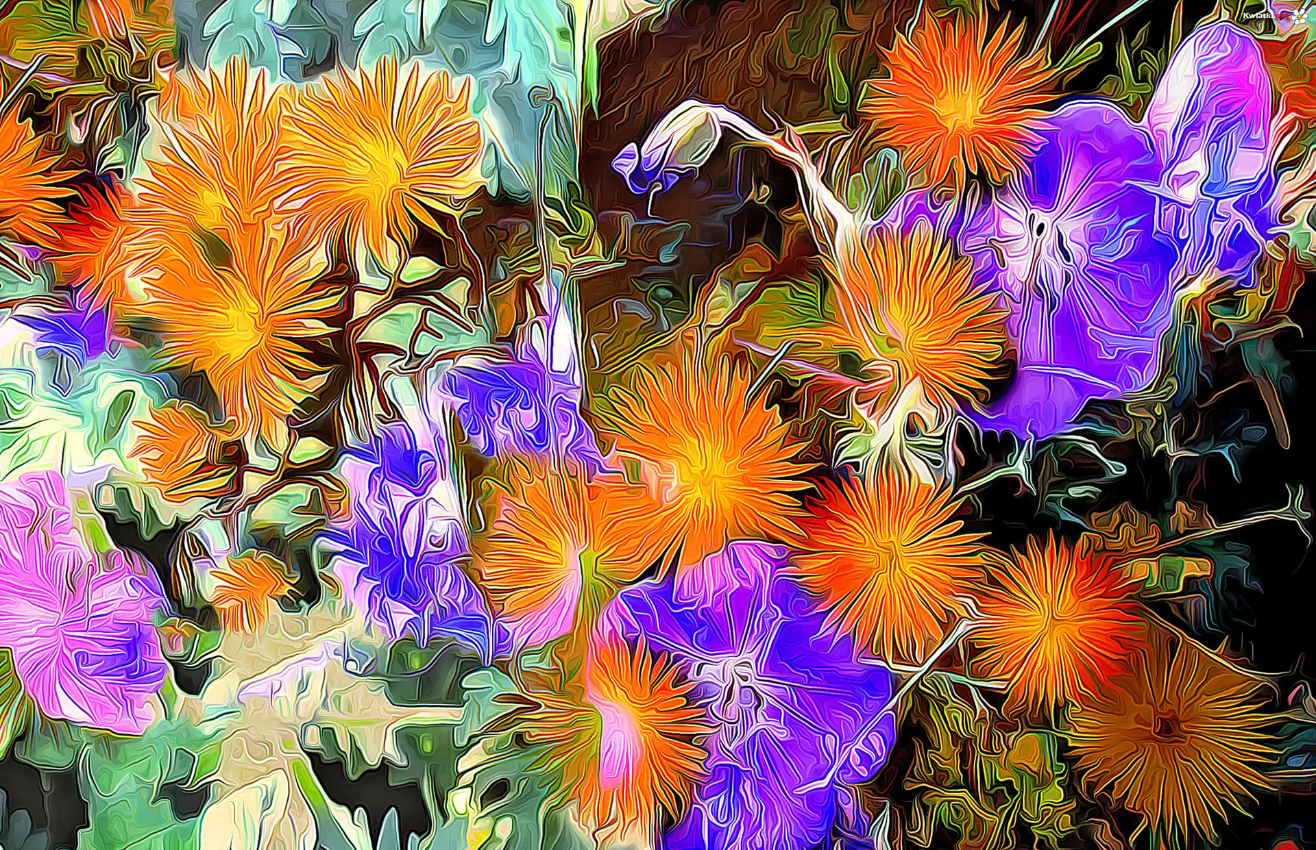 Pomarańczowe, Fioletowe, Kwiaty, Fractalius - Zdjęcia