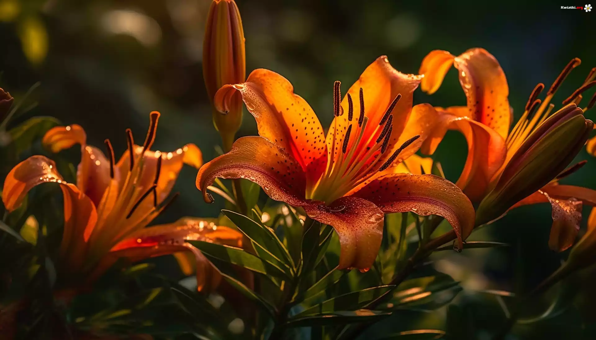 Lilie, Pomarańczowe, Kwiaty, Światło, Grafika - Zdjęcia