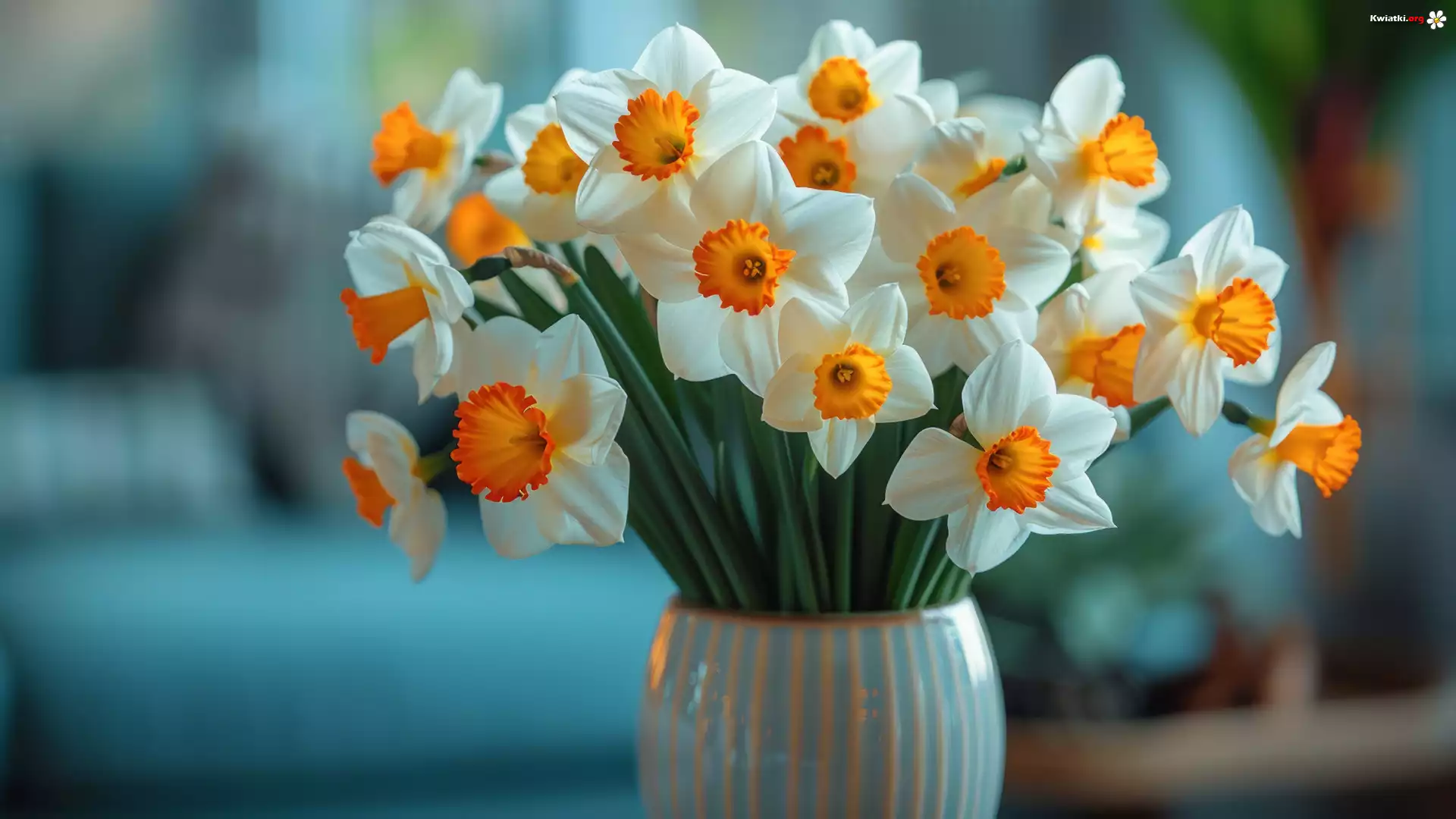 Biało-pomarańczowe, Kwiaty, Narcyzy, Wazon - Zdjęcia