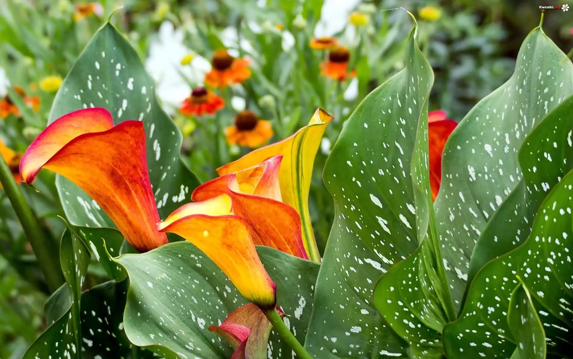 Kwiat Pomarańczowe, Kalie, Liście, Ogród