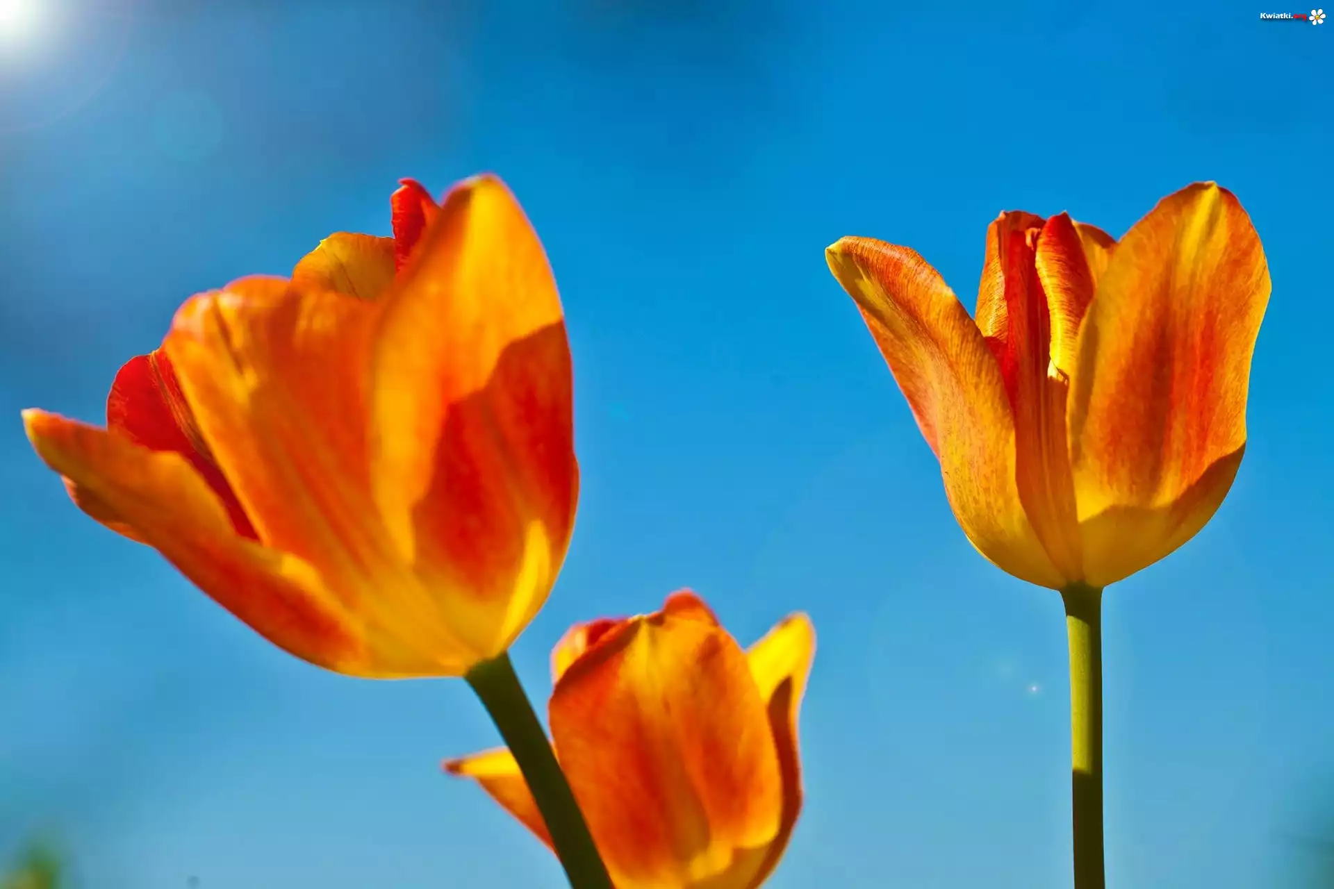 Kwiat Pomarańczowe, Tulipany, Niebieskie, Tło