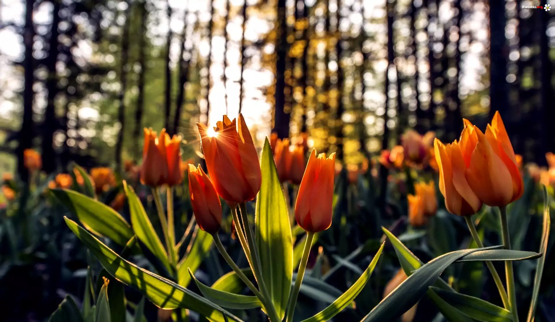 Kwiat Pomarańczowe, Tulipany, Promienie Słońca, Las