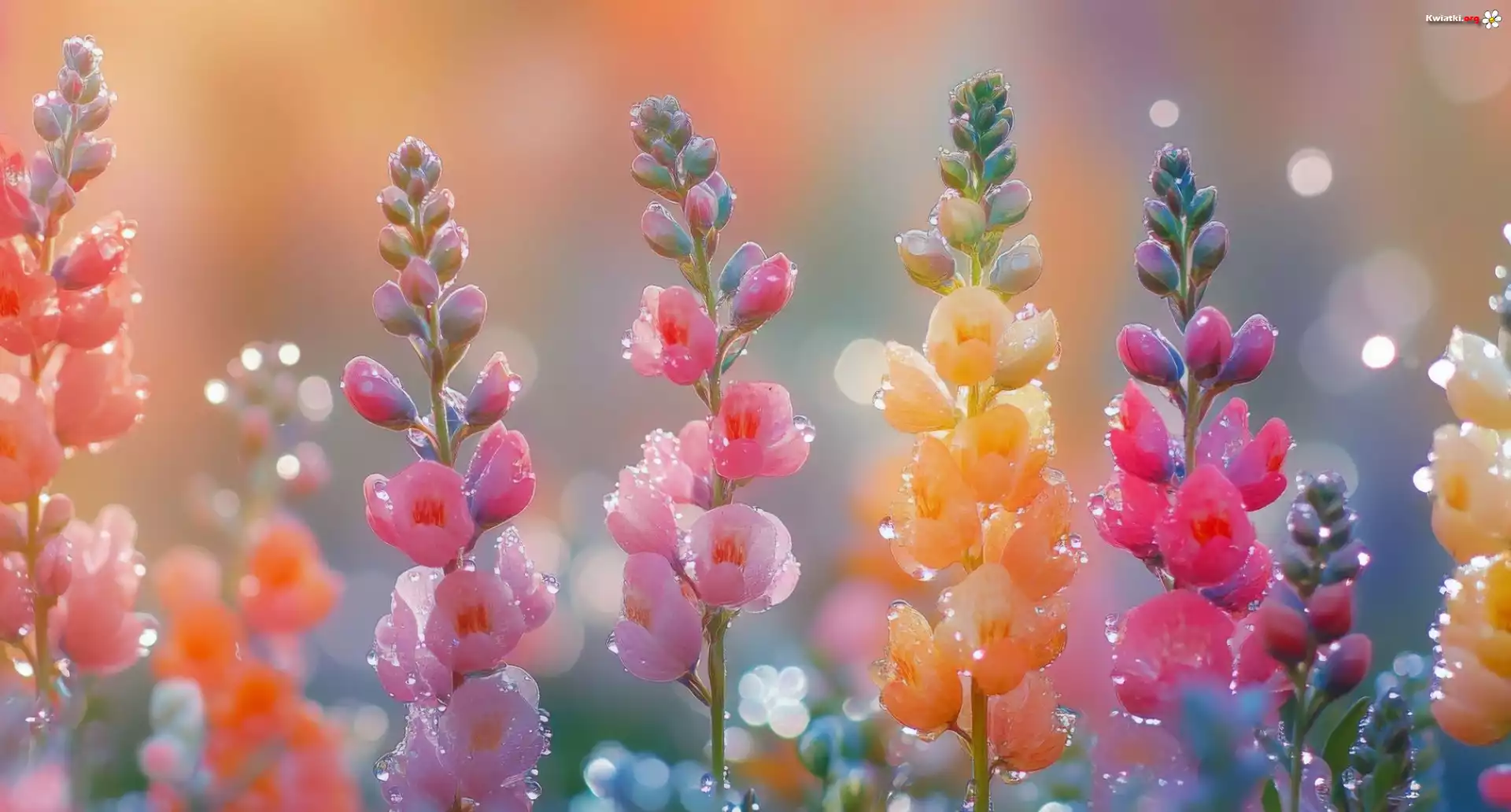Kwiaty, Różowe, Żółte, Pomarańczowe, Krople, Tło - Zdjęcia