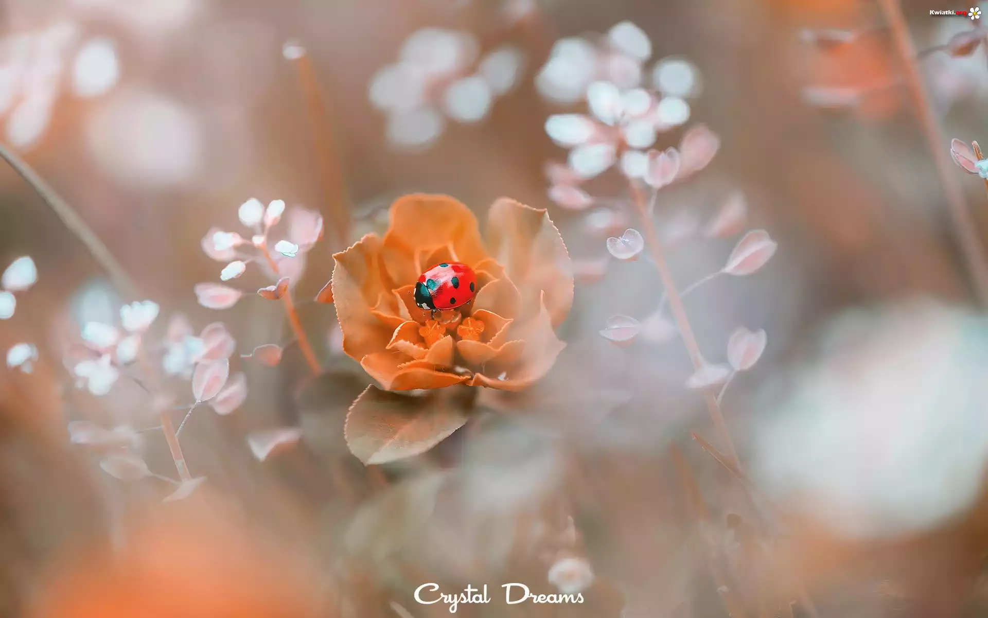 Kwiat, Pomarańczowy, Biedronka, Rozmyte tło - Zdjęcia