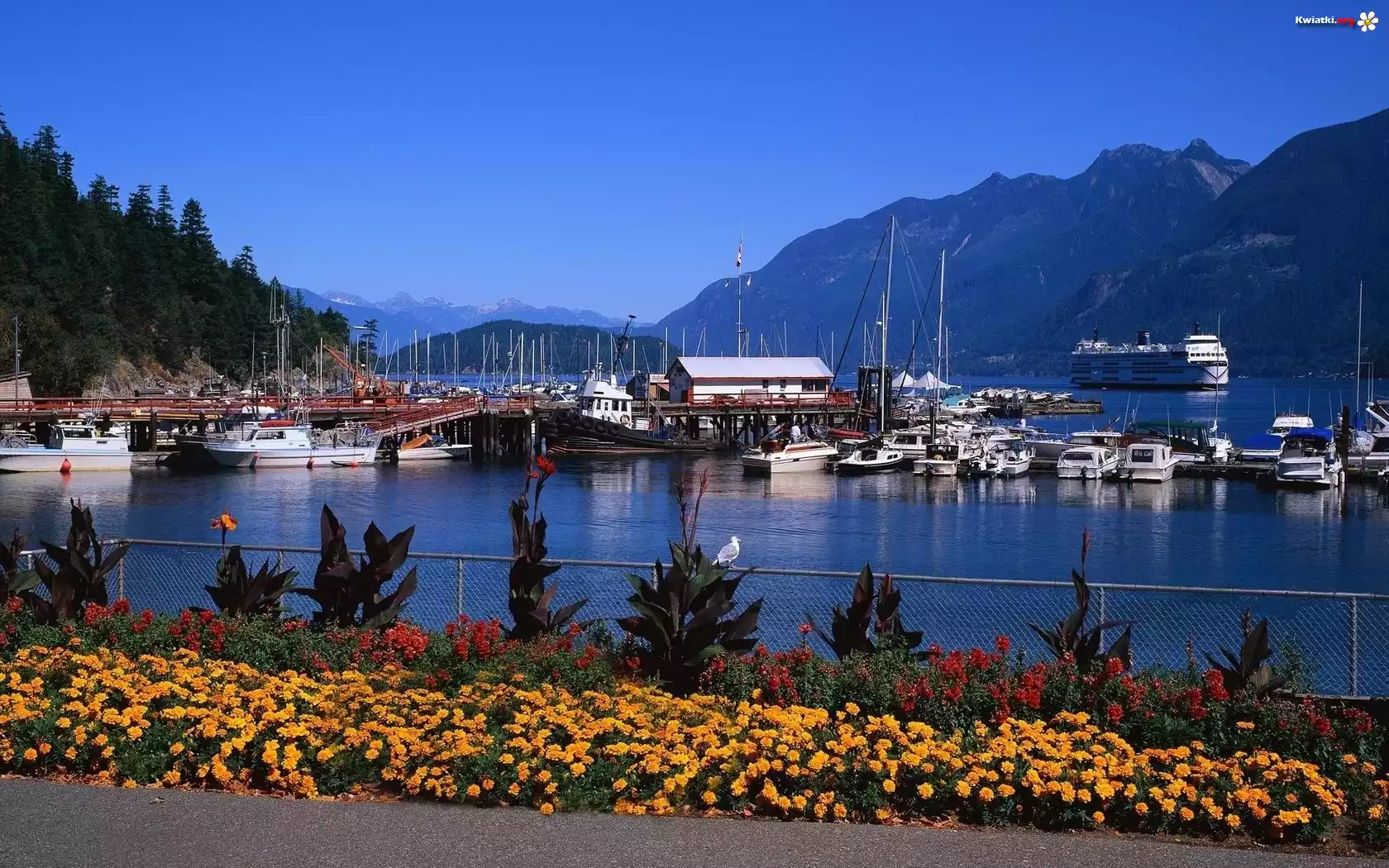 Port, Statek, Motorówki, Góry, Kwiaty - Zdjęcia