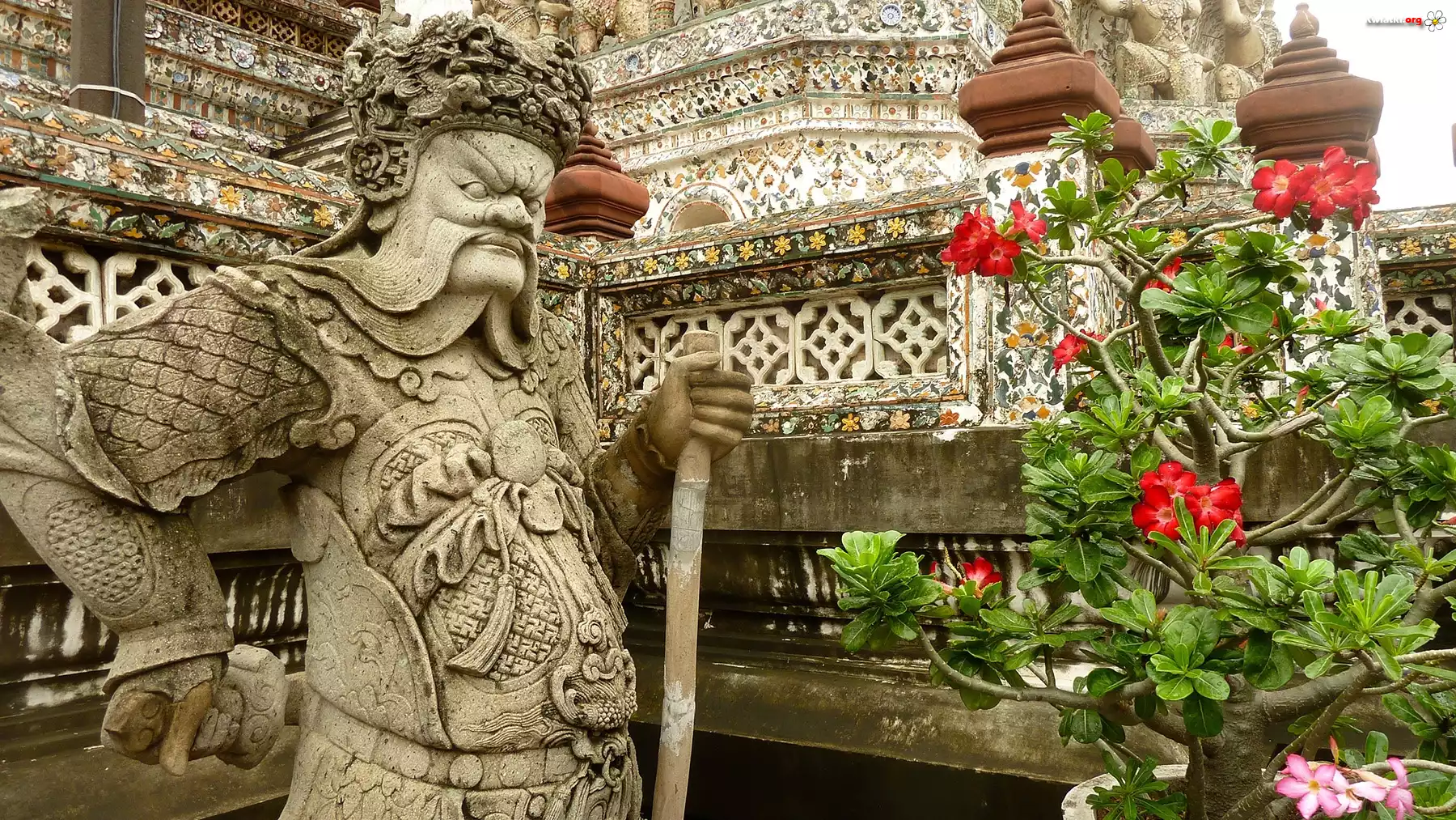 Posąg, Kwiaty, Świątynia, Tajlandia - Zdjęcia