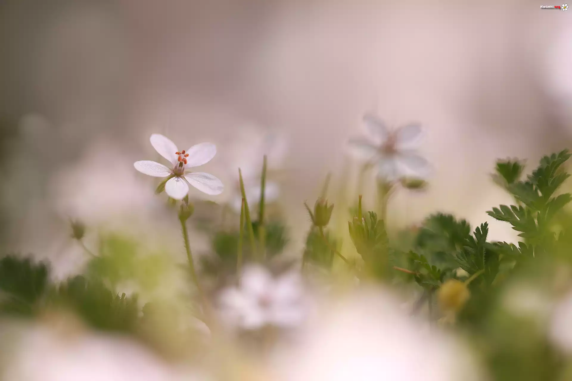 Kwiat Iglica pospolita, Białe, Kwiaty, Rozmycie
