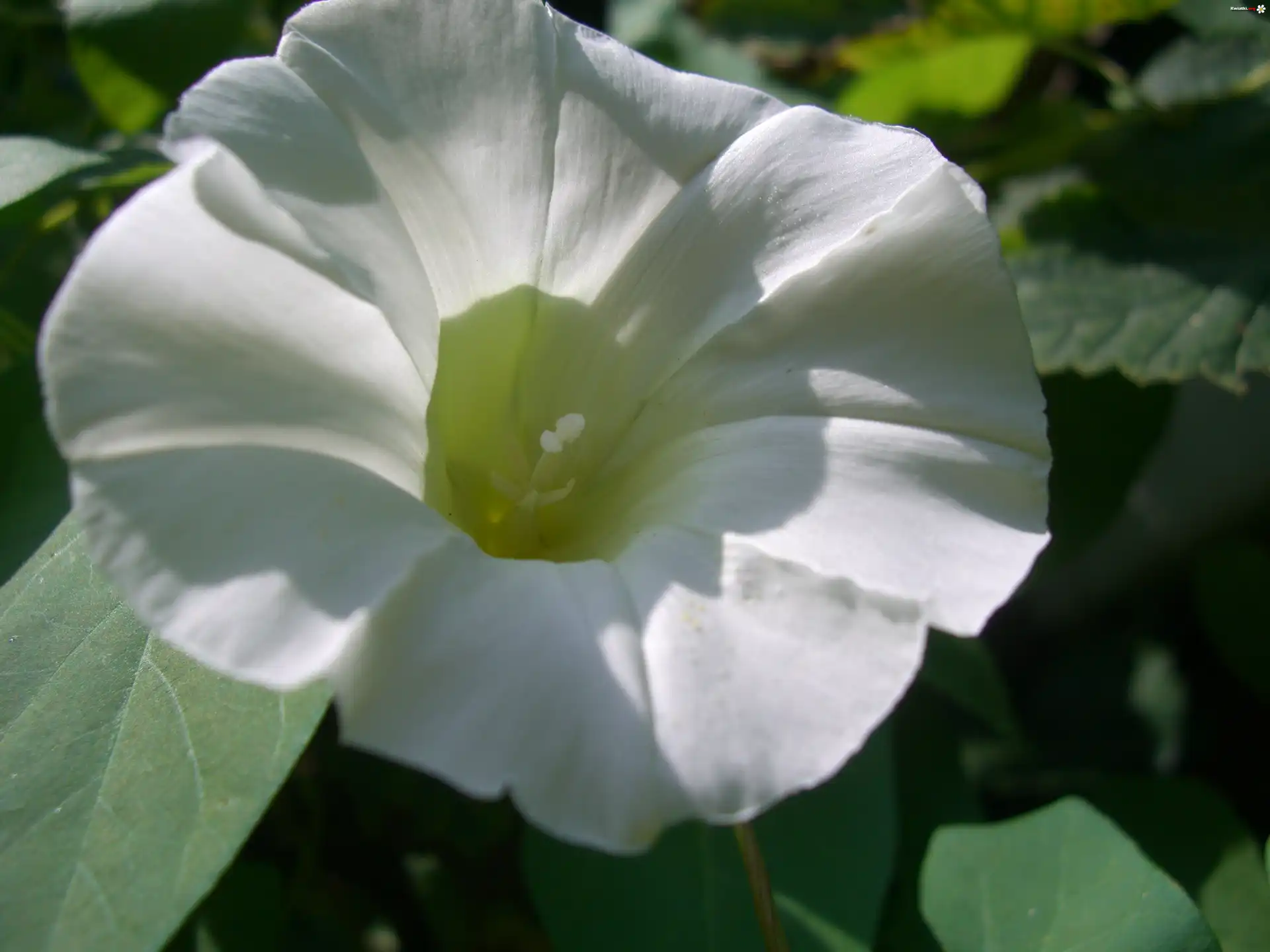 Kwiat Powój, Biały, Kwiat, Liście