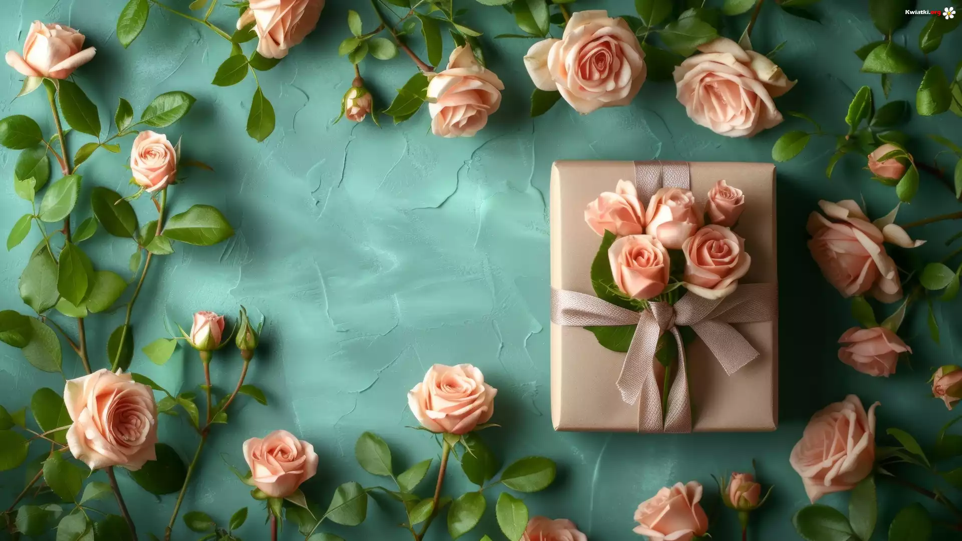 Kwiat Kwiat, Róże, Liście, Prezent