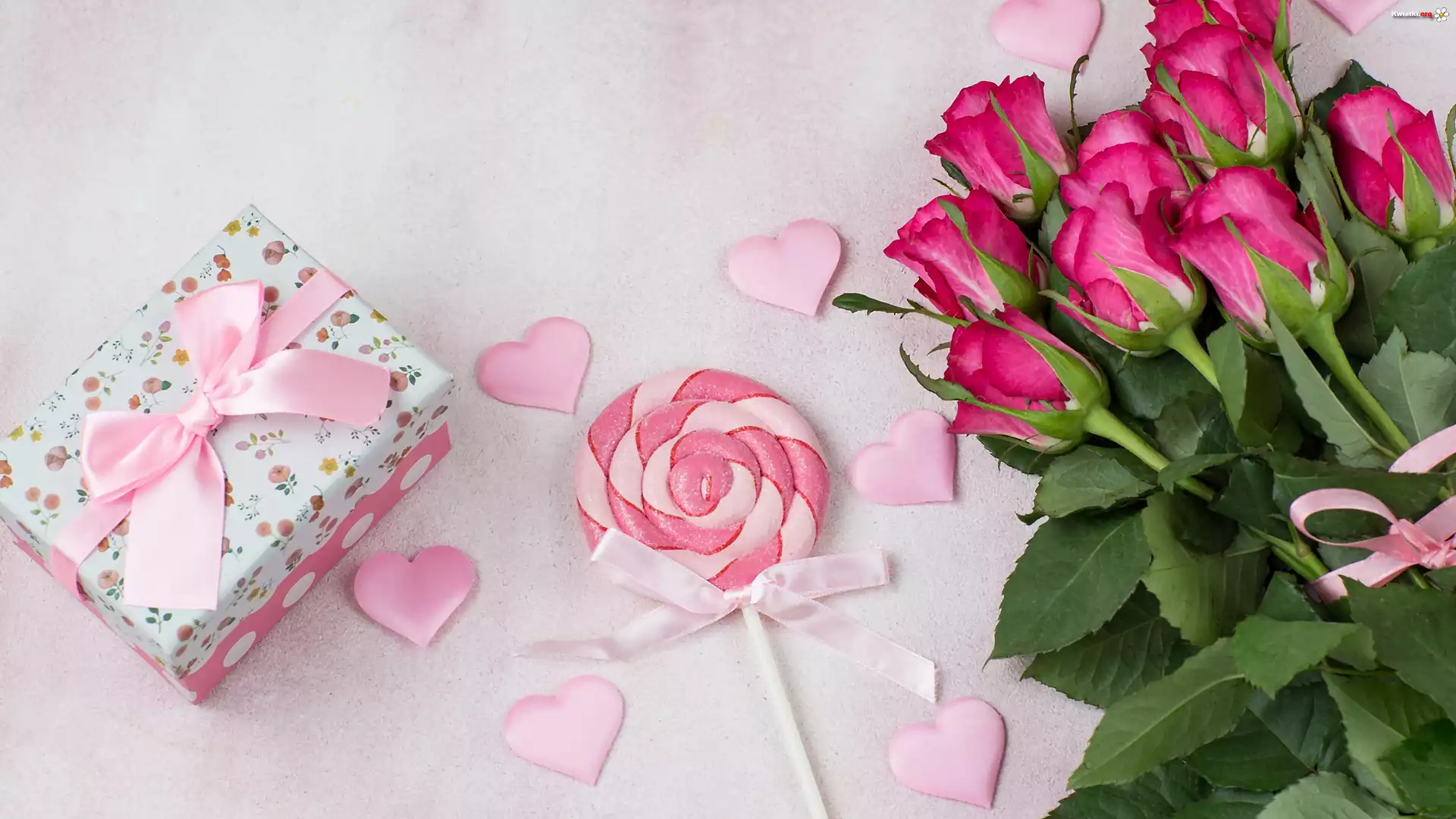 Prezent, Lizak, Serduszka, Róże, Walentynki - Zdjęcia