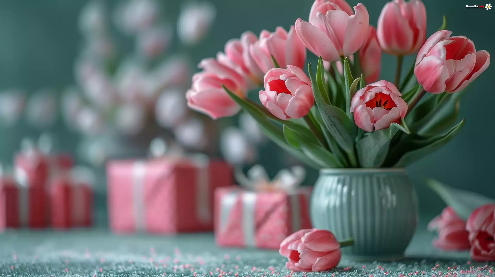 Kwiat Bukiet, Tulipany, Wazon, Prezenty
