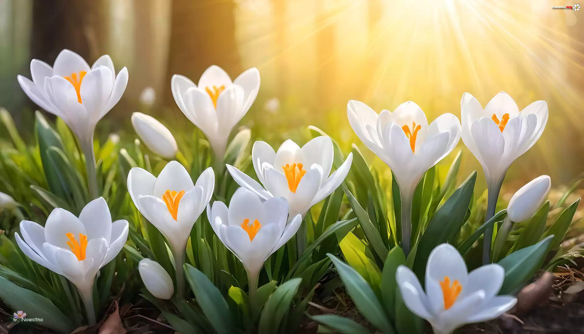 Kwiat Białe, Krokusy, Kwiaty, Promienie słońca, Grafika