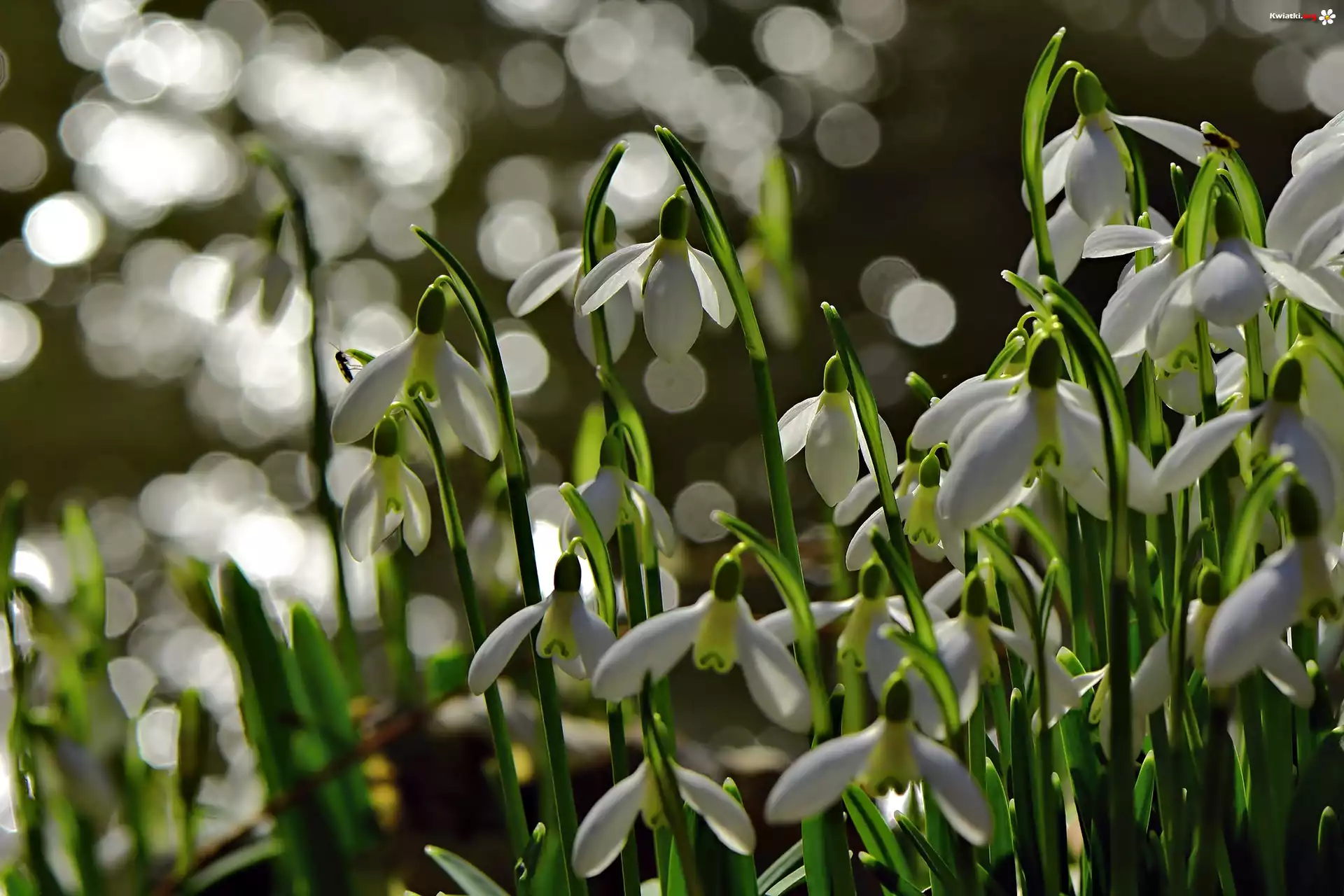 Przebiśniegi, Światło, Bokeh, Wiosna - Zdjęcia