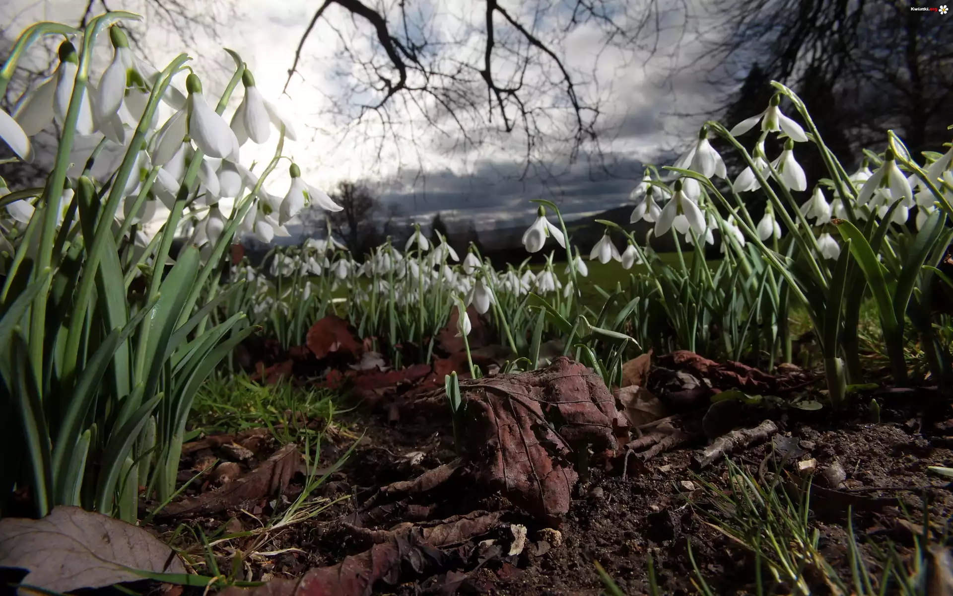 Kwiat Przebiśniegi, Liście, Gałęzie, Niebo