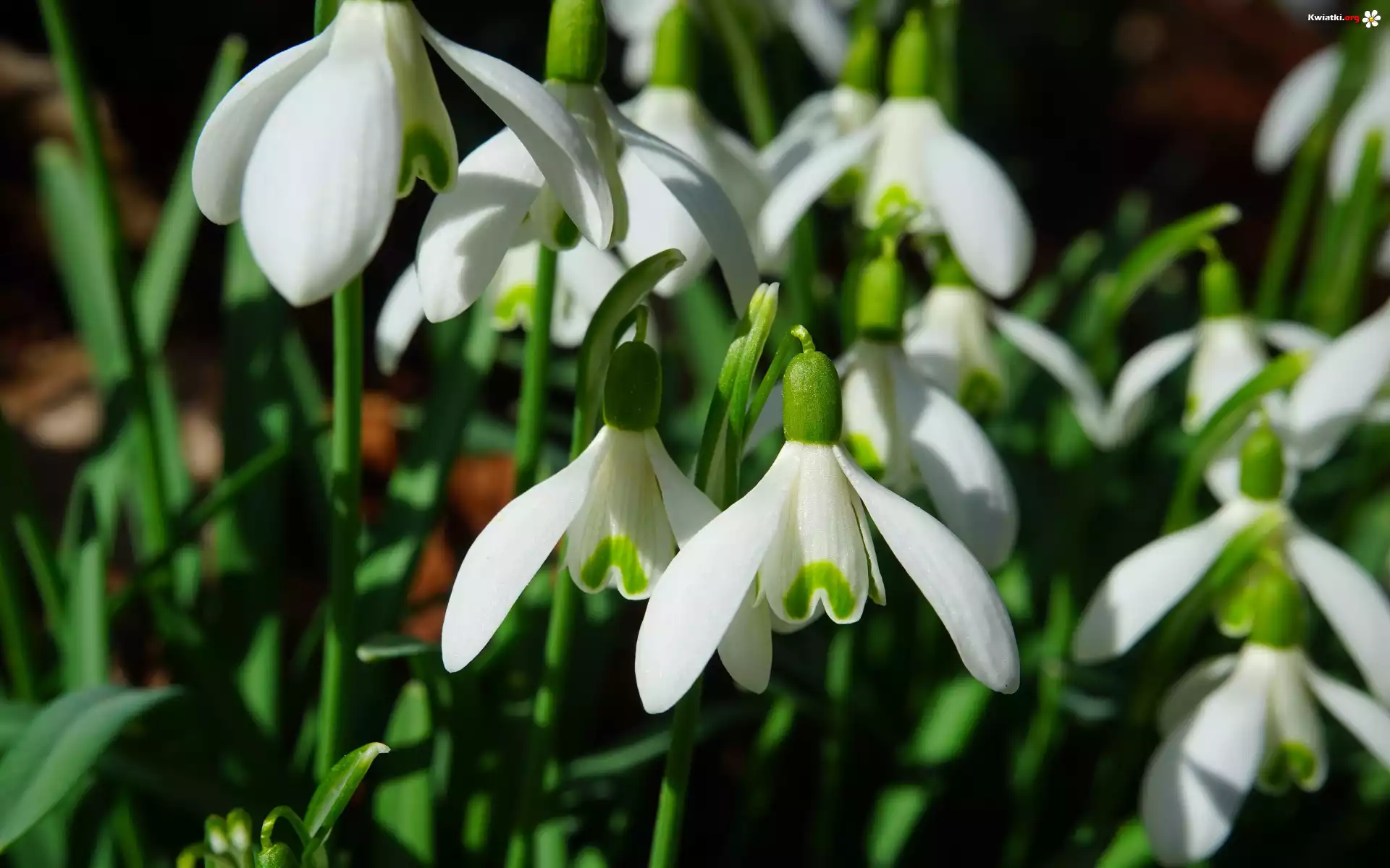 Kwiaty, Białe, Rozświetlone, Przebiśniegi - Zdjęcia