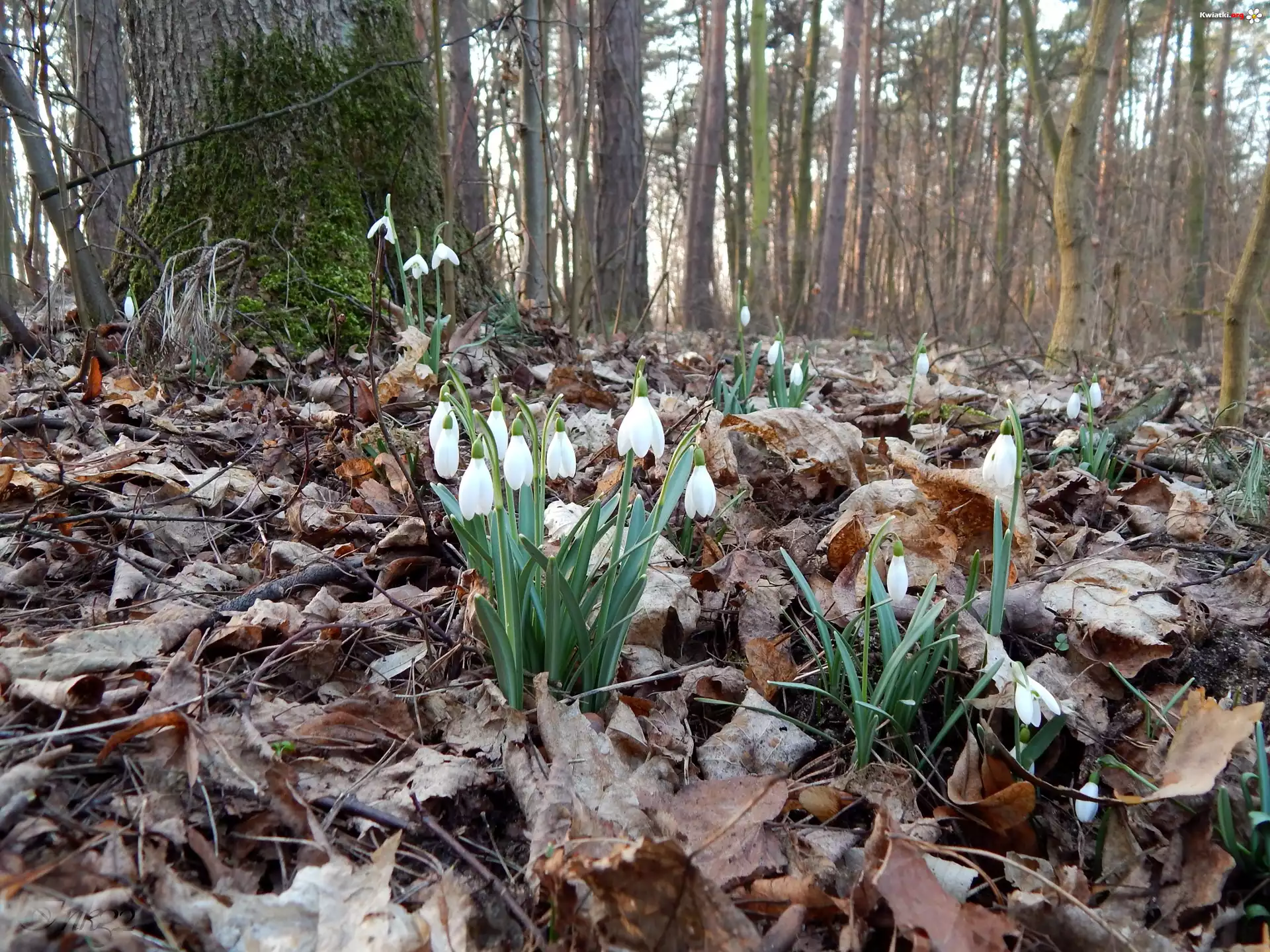Przebiśniegi, Liście, Las, Drzewa - Zdjęcia