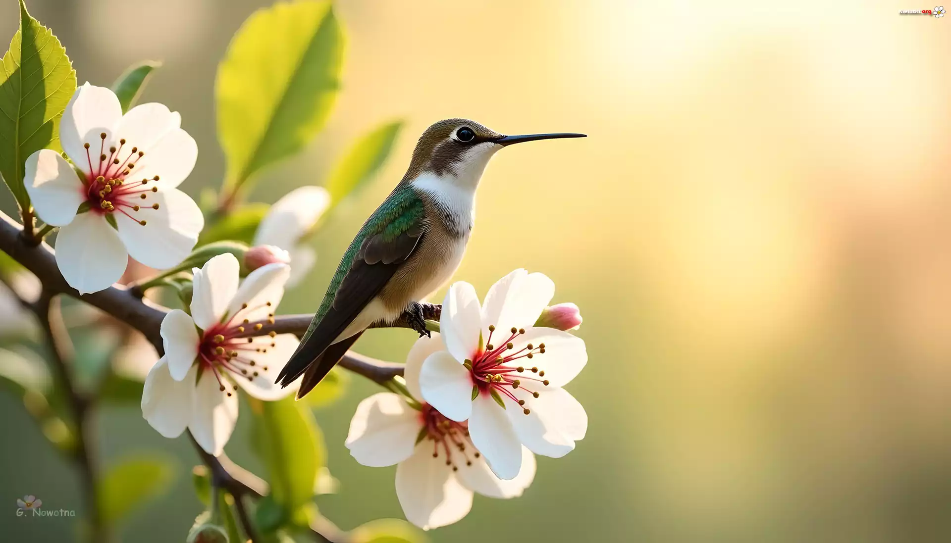 Koliber, Ptak, Białe, Grafika, Kwiaty - Zdjęcia