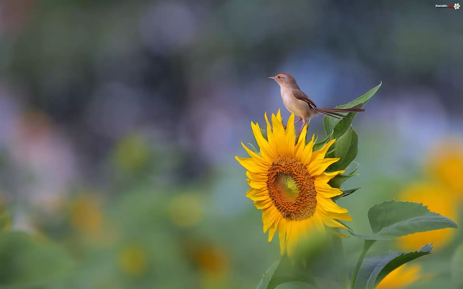 Słonecznik, Ptaszek, Makro - Zdjęcia
