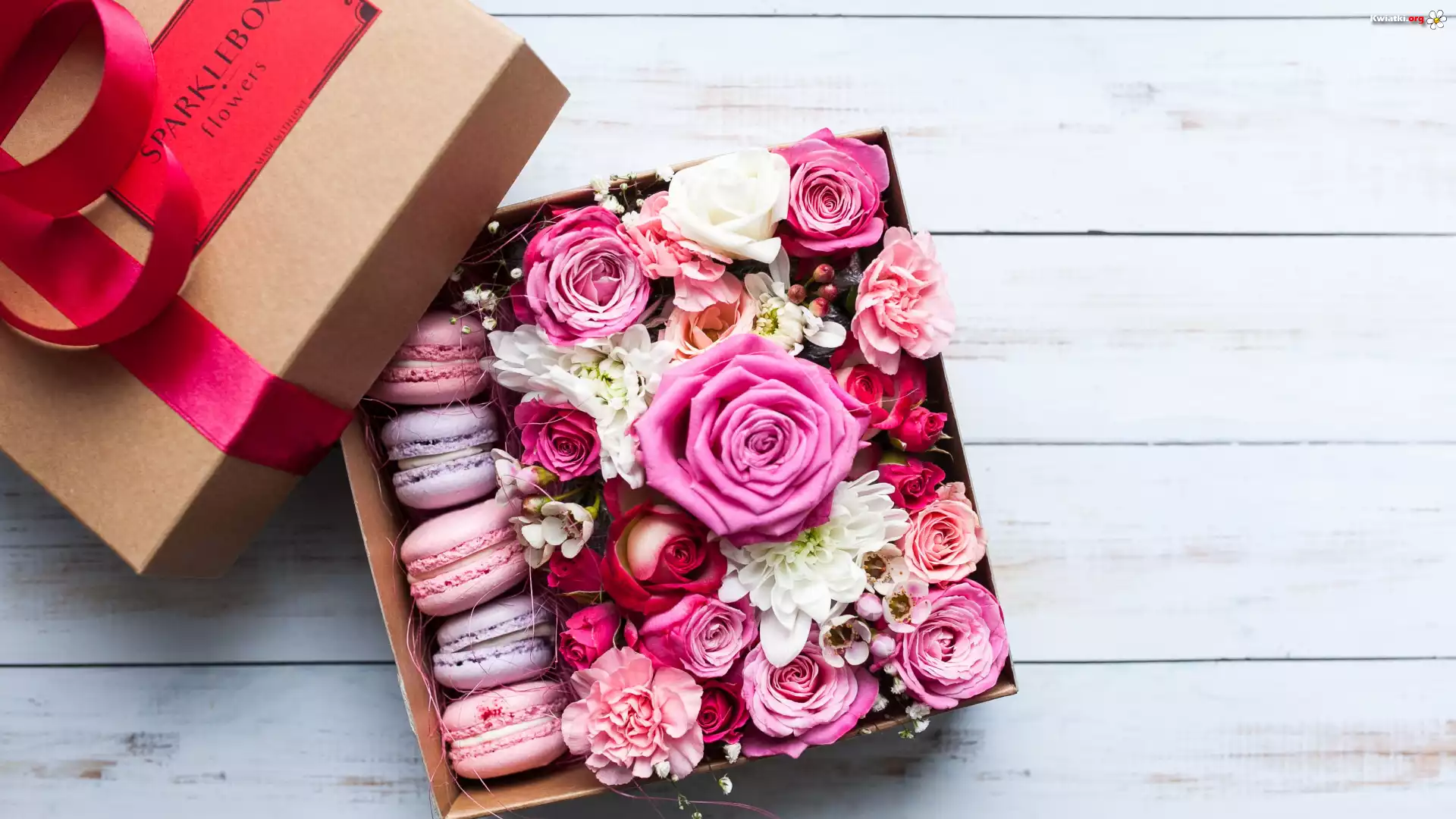 Kwiat Pudełko, Kwiaty, Ciastka, Makaroniki