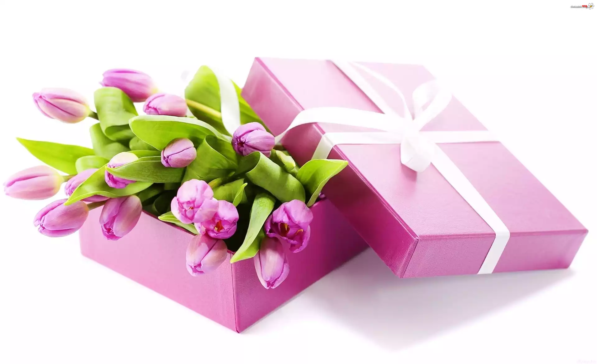 Fioletowe, Pudełko, Tulipany - Zdjęcia
