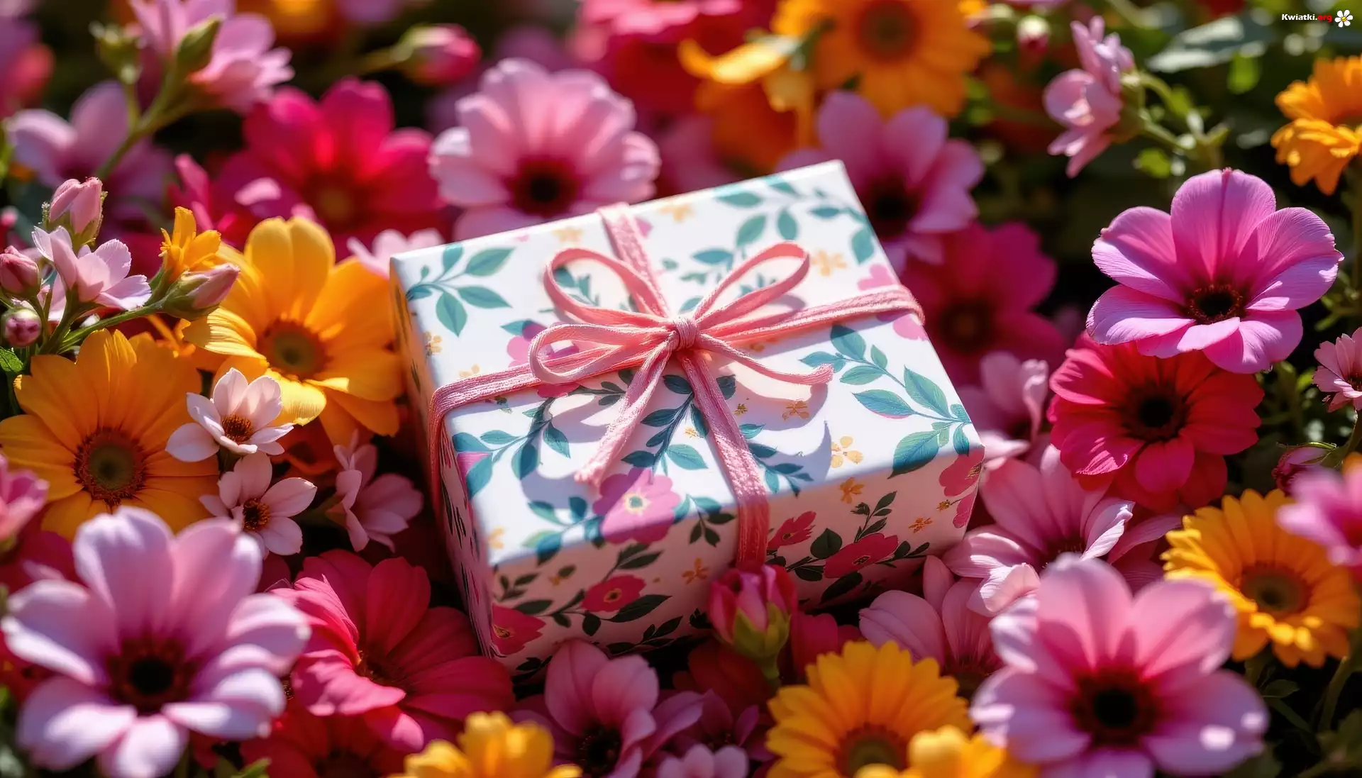 Kwieciste, Pudełko, Prezent, Kokarda, Kwiaty - Zdjęcia
