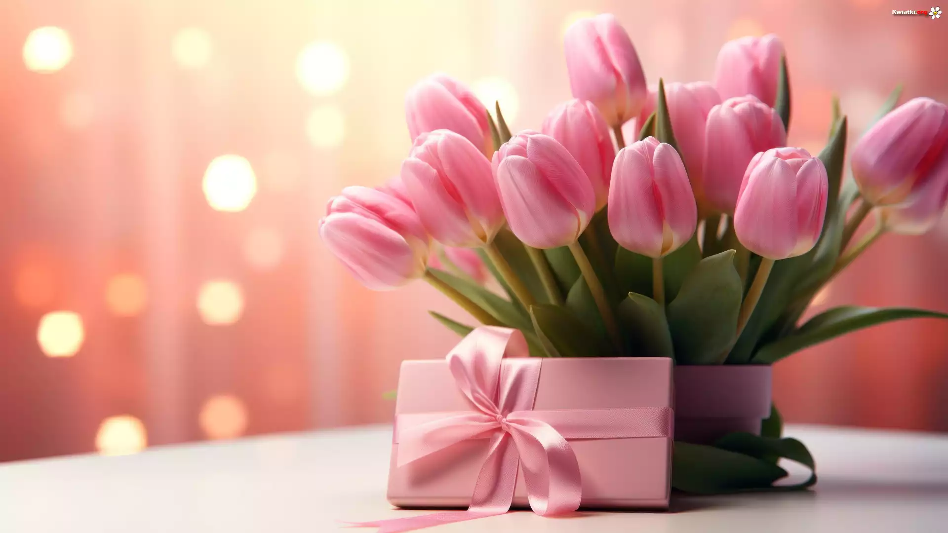 Kwiat Kwiaty, Tulipany, Różowe, Pudełko, Prezent, Tło