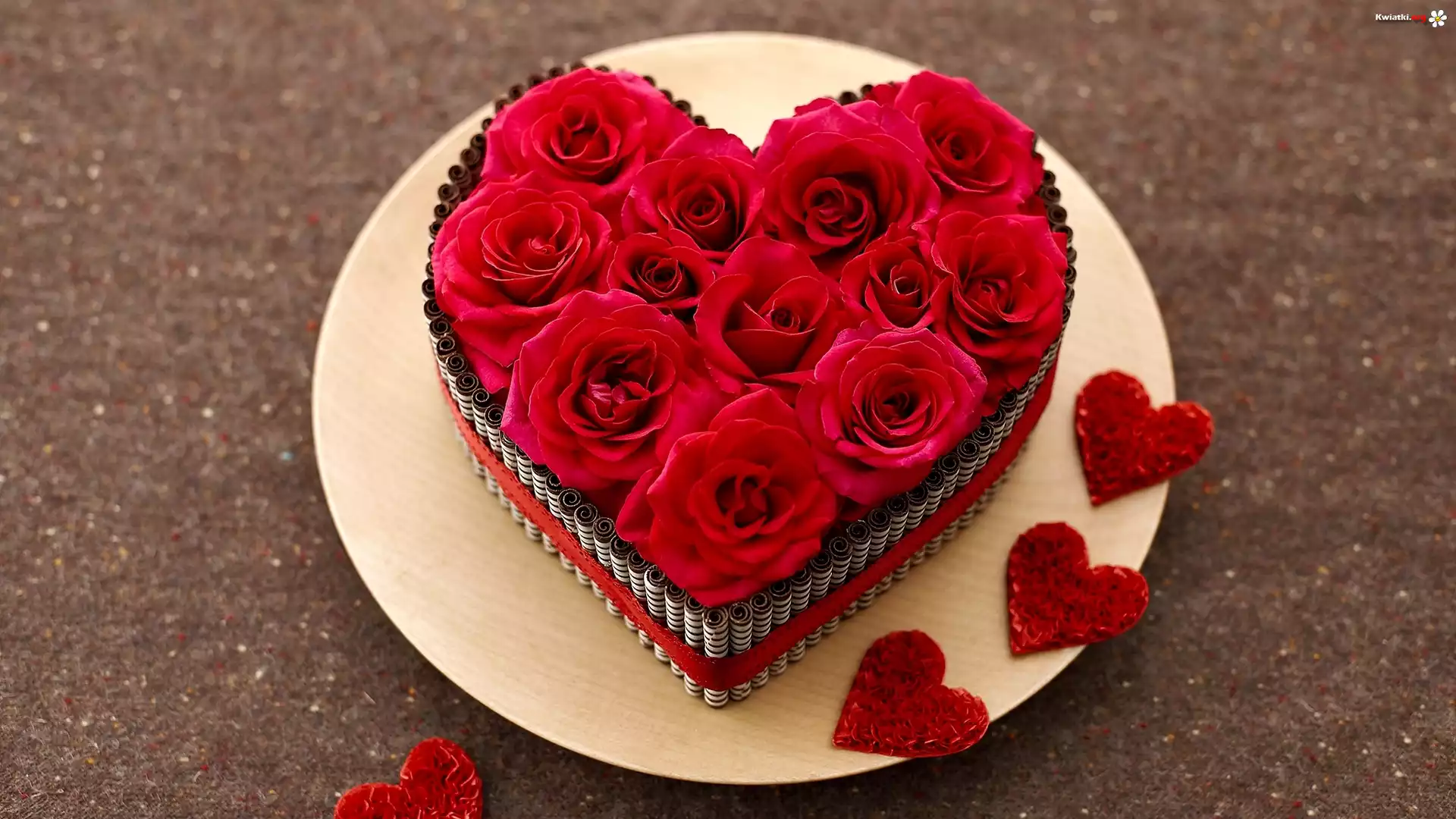 Walentynki, Pudełko, Serce, Czerwone, Róże, Talerzyk, Serduszka - Zdjęcia