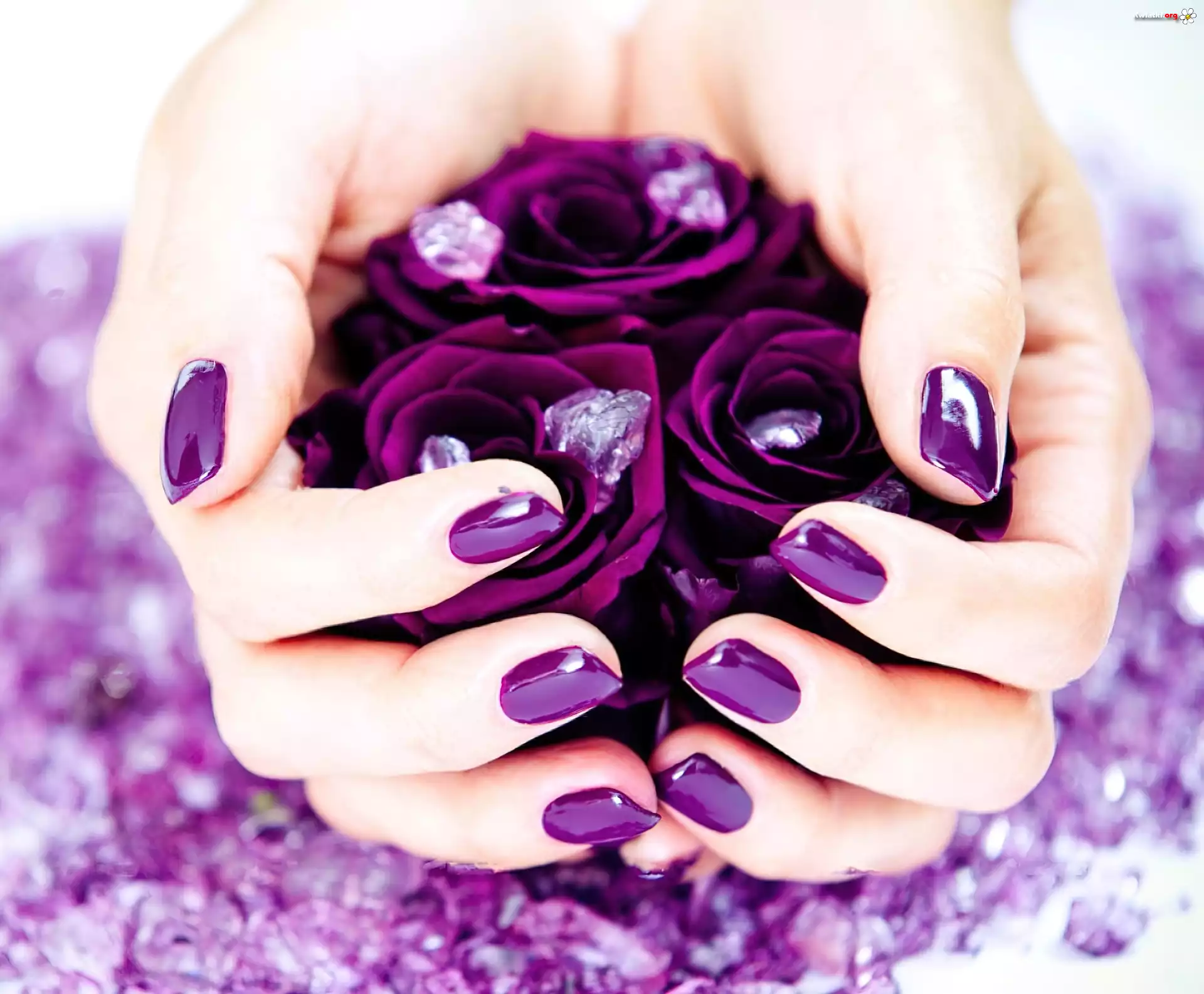 Dłonie, Purpurowe, Róże - Zdjęcia