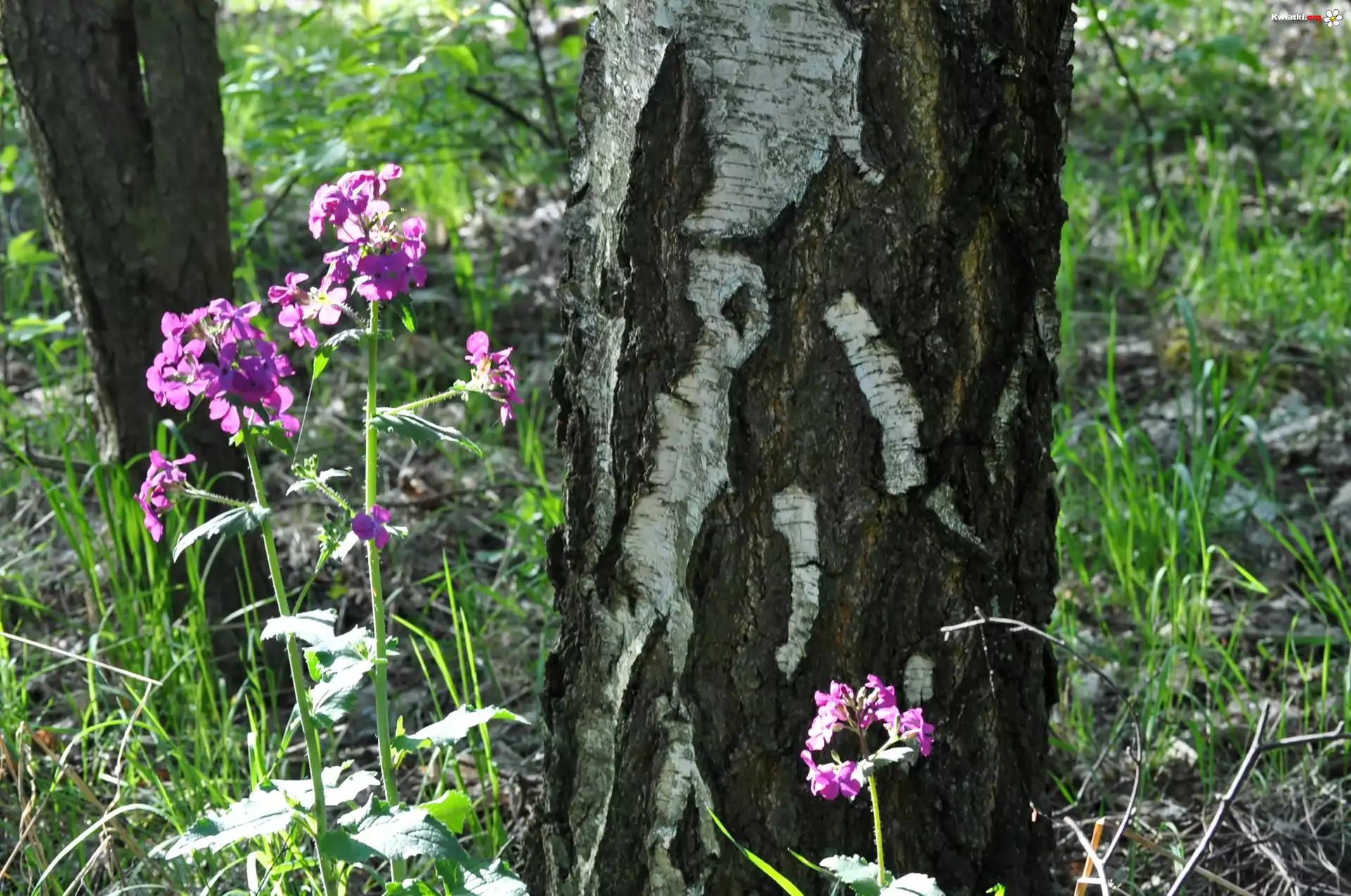 Purpurowe, Leśne, Kwiaty, Pień, Drzewa, Lunaria - Zdjęcia