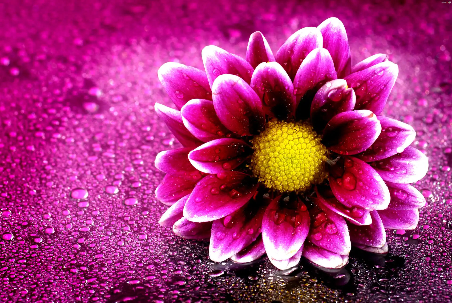 Purpurowy, Kwiat, Krople Wody, Makro - Zdjęcia